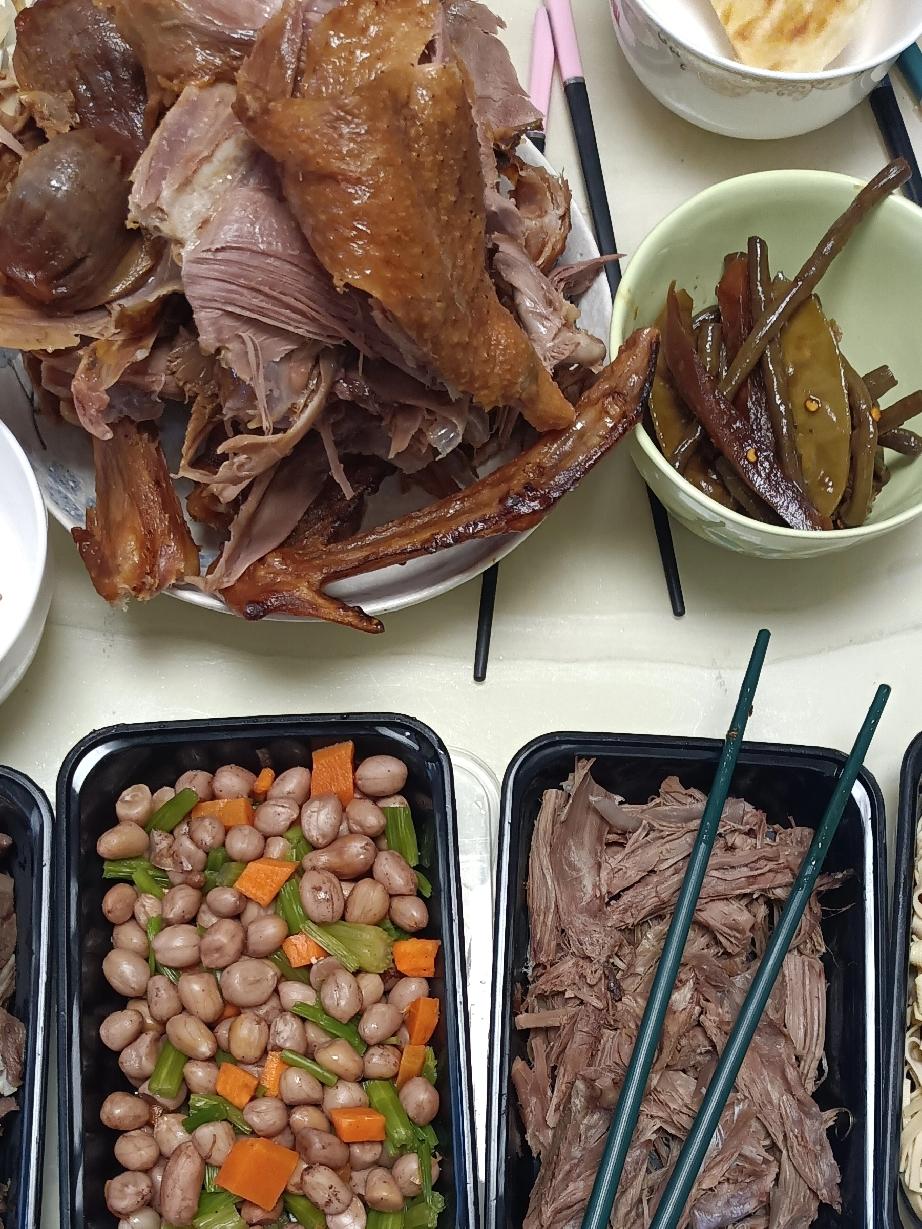 都说老嫂比母,还真是这么回事! 二大伯嫂比我们大十好几岁,对我们可好了!特别关心我们! 看我昨天太辛苦了,今天非要请我们去她家吃饭。 这几天基本总是在外边吃饭,老公我俩就想回家吃点家常便饭,太累了,就不去了! 我晚上还没到家,二嫂的电话就过来了,别做晚饭了,一会我们带东西去你家吃饭,连主食都带来啦! 太丰盛啦!在饭店叫的狗肉套餐,还买了半个大鹅,还有小咸菜,主食是烙大饼! 可心疼我们了,我真是特别感激!总请我们吃饭,有啥好东西都给我们送过来! 老嫂比母!这话说得没错! 感恩遇见吧!
