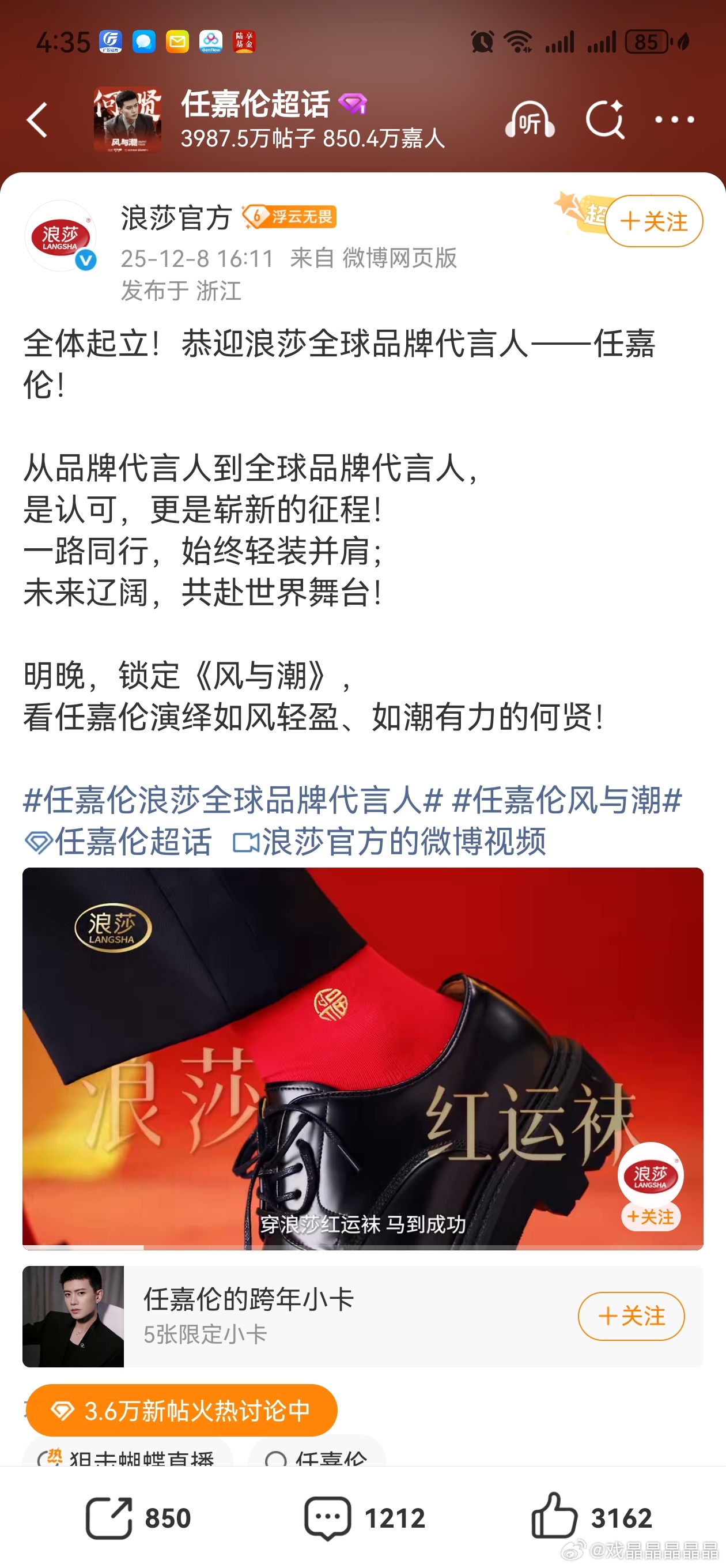 浪莎官宣任嘉伦为品牌代言人后三个月(正正好三个月),于今天下午4.11分官宣任嘉伦为全球品牌代言人!好有心啊,特地挑了生日时间卡点官宣!任嘉伦浪莎全球品牌代言人