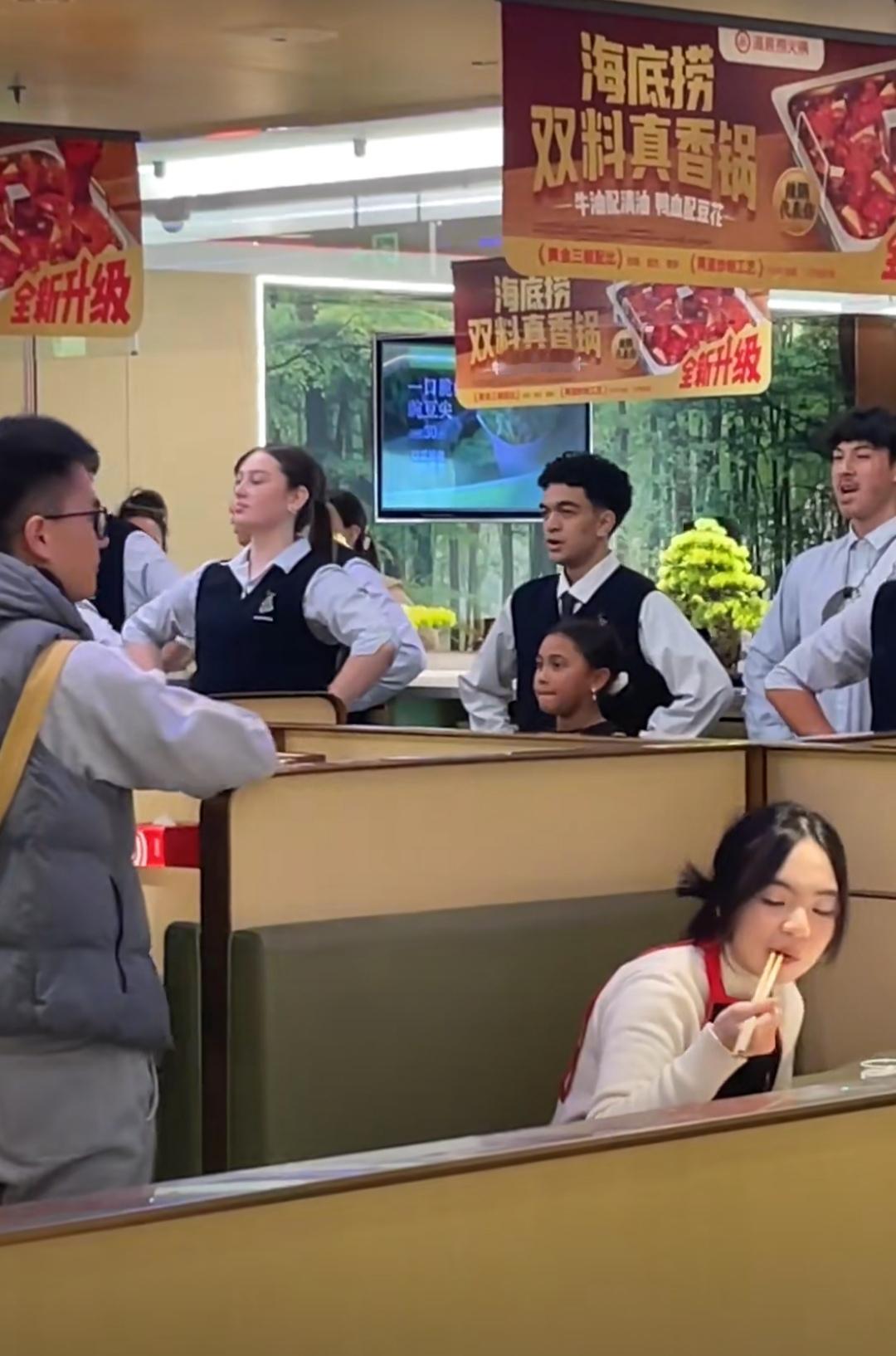 海底捞生日歌终于遇上了对手——新西兰毛利战舞。 12月7日,成都的一家海底捞火锅店,一群新西兰游客在导游“胡伊”的带领下用餐时,突然集体表演毛利战舞(哈卡舞)。参与者动作整齐划一,通过跺脚、拍打身体、瞪眼吐舌等动作展现力量感。 毛利战舞源于新西兰土著人毛利文化,最初用于战前威慑敌人、鼓舞士气。高呼口号、瞪眼象征驱逐邪恶,吐舌代表挑战姿态。 在平时生活中,高兴即跳舞。在火锅店跳纯属欢乐助兴和展示。 图1红圈处,小黑表演到位,突然发现有点像猩猩了。 看这统一的服装,刚开始还以为是店里的服务员呢。但一想到是成都,不可能,这些人可能是学生,来研学求学的。 根据历史语言学家的研究,毛利人是最早居住在河北、山东一带的东夷人后代。 毛利人跳战舞没毛病。但白人跳就不够意思了,难道为宣扬自己祖先屠杀了毛利人的祖先以跳战舞来忏悔自己虚假的道德感?!这也太讽刺了。