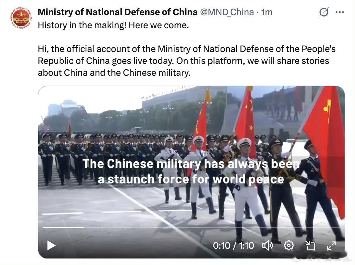 12月8日傍晚,国防部开通海外x英文账号。 如此一来,国际传播矩阵形成:国防部账号与军号、战区账号形成协同网络,强化“全域到达、多域协同”联合作战能力的外宣投射。 从被动回应转向主动定义话语权。“威慑可视化”策略延伸至顶级官方机构。 部分西方智库视其为“备战信号”。 账号刚开通,单日阅读量超3亿次。 也好,教会世界学懂中国语言,另一个维度的HelloWorld,用它们听得懂的语言——武器的批判绝不能缺席。