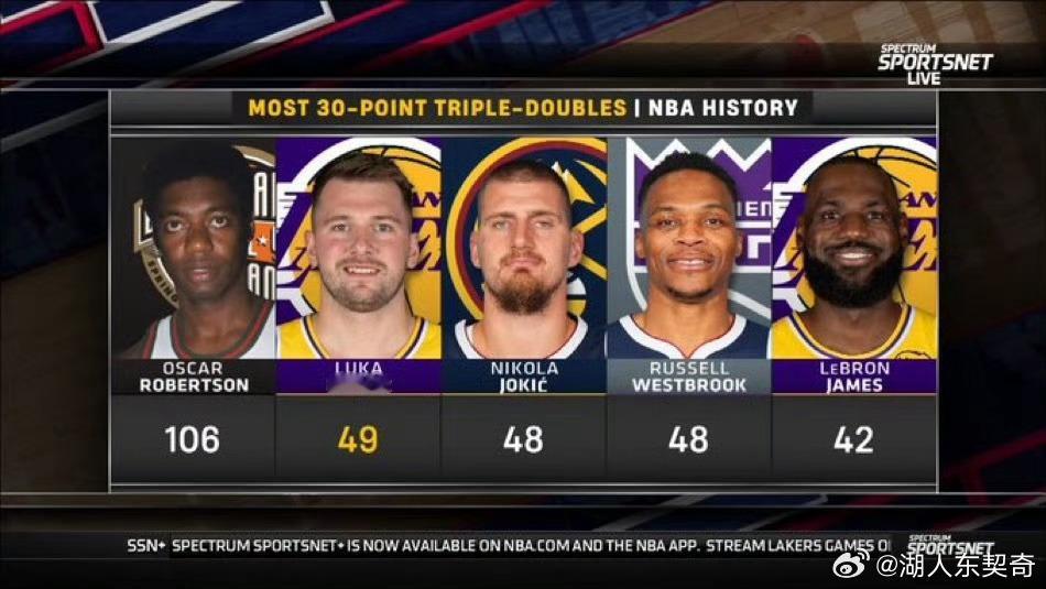 盘点NBA历史上30+得分三双次数榜:1️⃣奥斯卡-罗伯特森2️⃣卢卡-东契奇3️⃣尼古拉-约基奇4️⃣拉塞尔-威斯布鲁克5️⃣勒布朗-詹姆斯 湖人东契奇