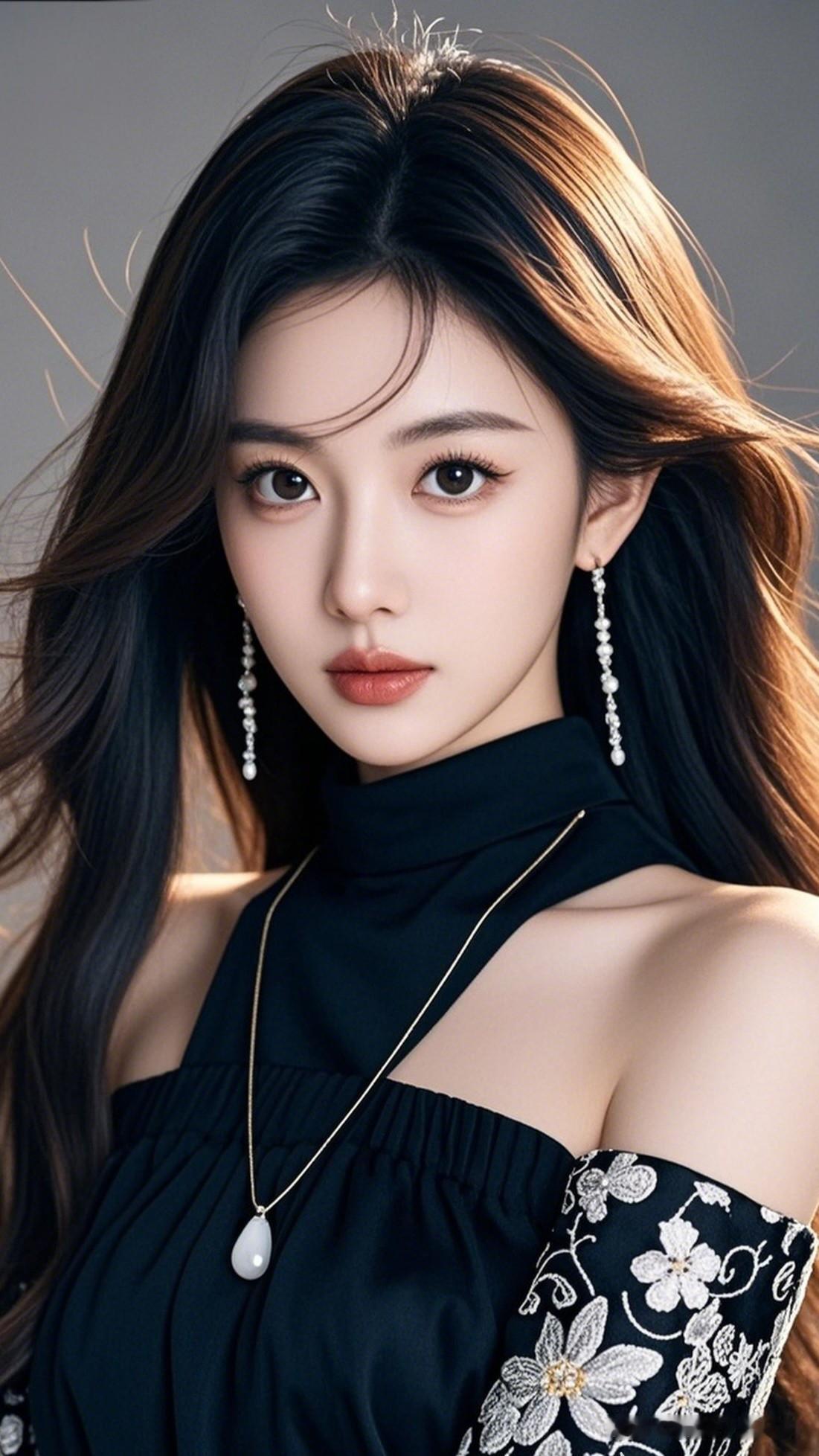 黑衣美人,珠光玉润。分享唯美壁纸作品 优雅黑裙,气质女神,珍珠耳环,时尚穿搭