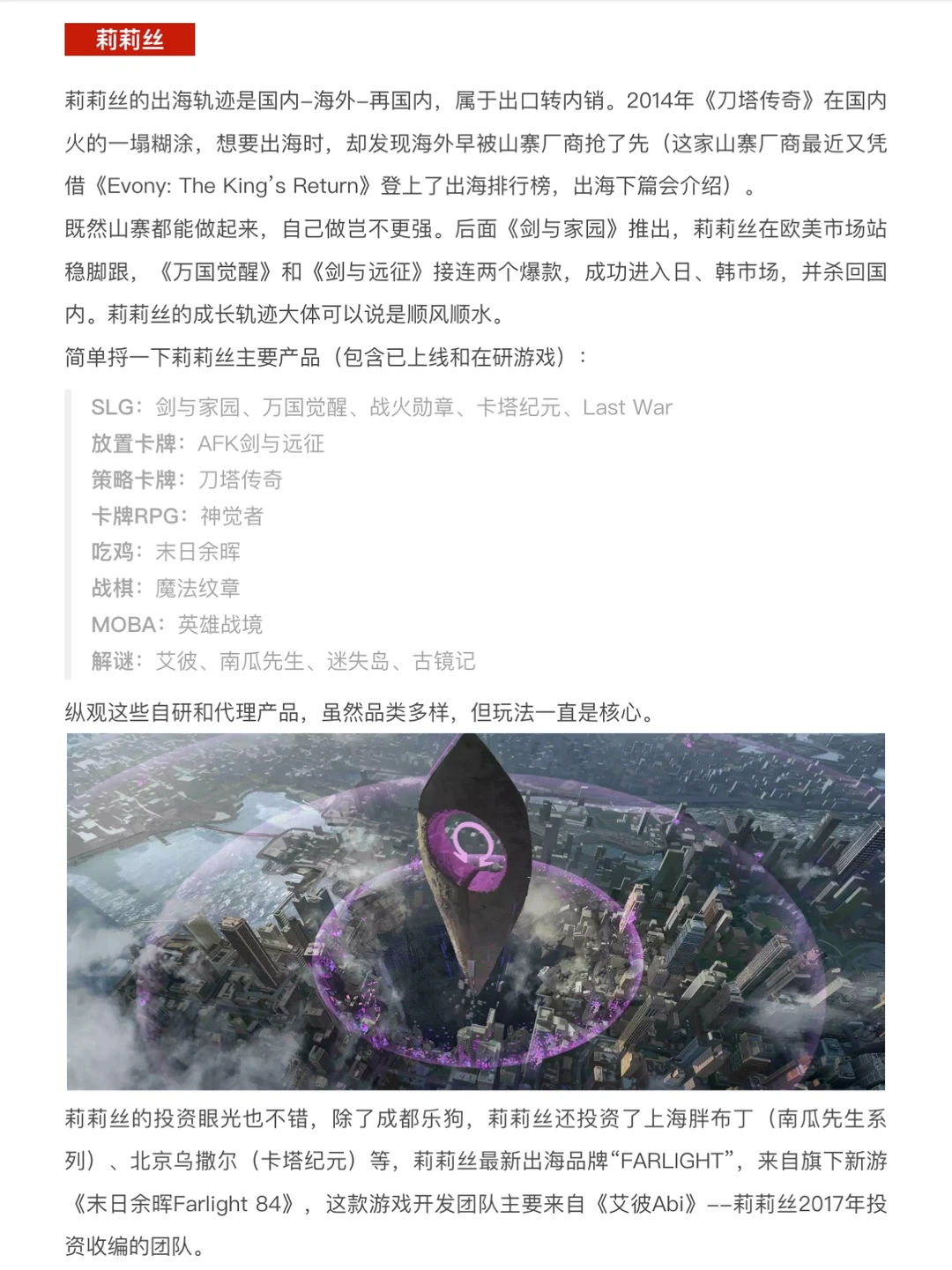 出海系列文章总体分为两部分,第一部分是国内、海外市场兼顾的大厂介绍,也包括部分出海失利的传统大厂介绍;第二部分是主要市场在海外的纯出海公司介绍。