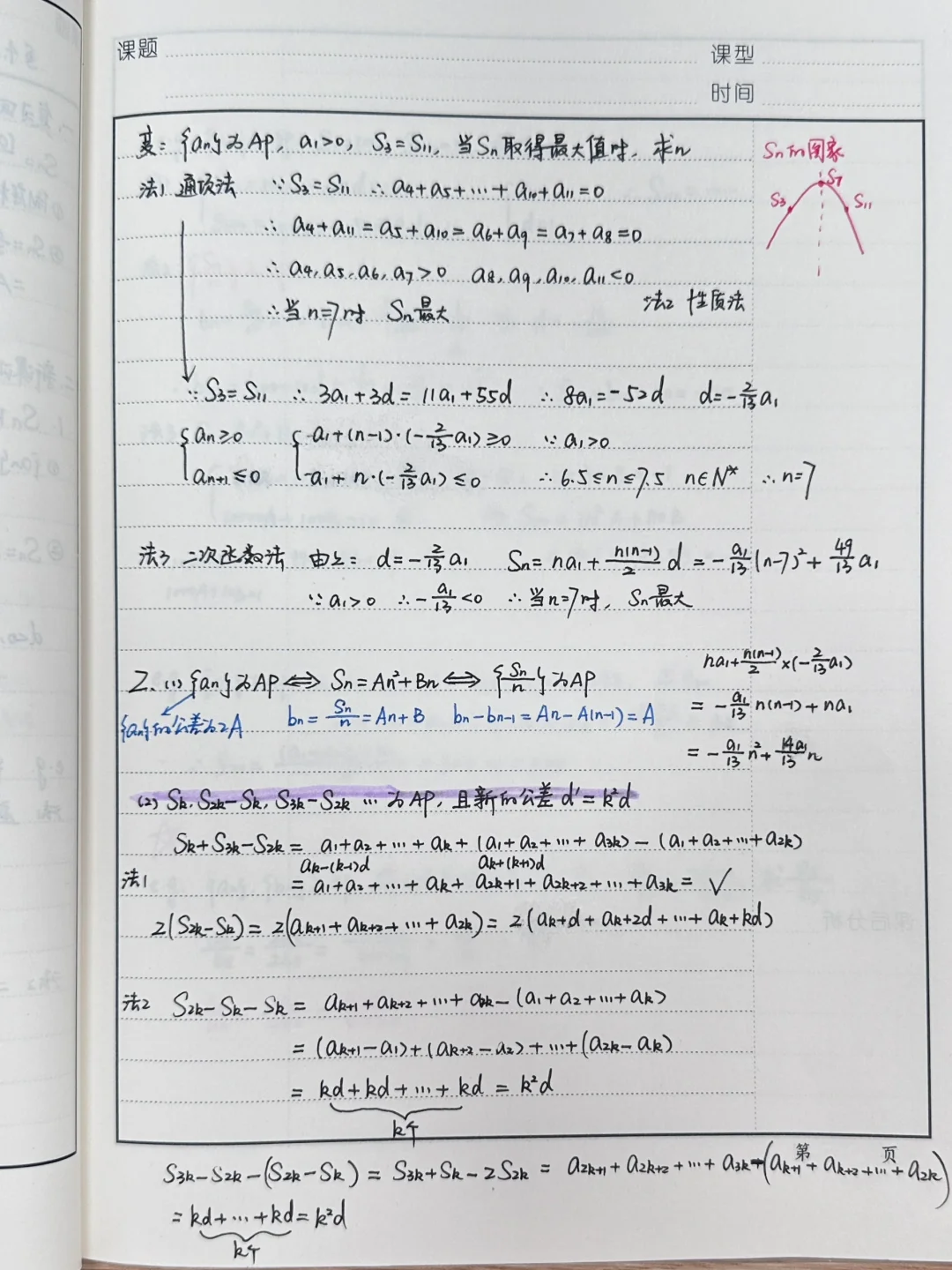 今天把教学内容写在备课本上了,回到原始状态,感觉更舒服~ 等差数列的前n项和的性质,这节内容蛮多的,我可能要讲两节课,还要评讲作业…新学期才开始,每天挺累的,这学期很漫长,好难熬[哭惹R]