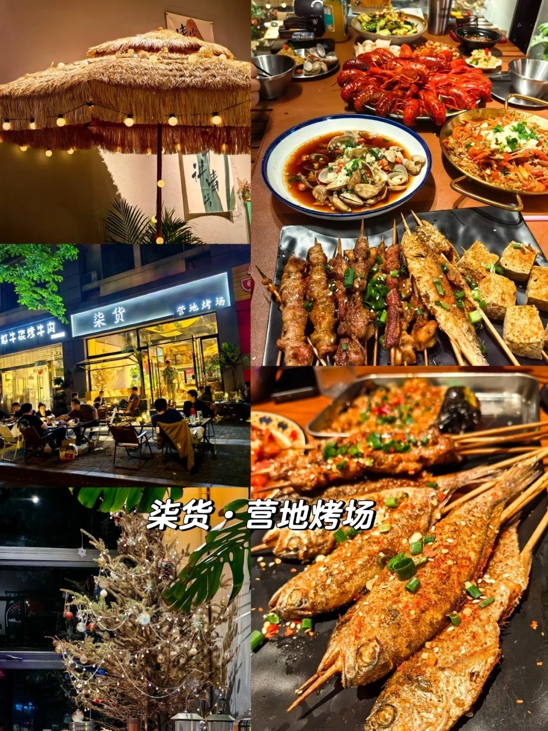 4️⃣柒货·营地烤场:当地网红夜宵店,有各种烧烤,小龙虾和啤酒,露营风的装饰让人很松弛🥰