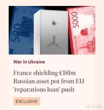 【最新消息:法国反对动用该国冻结的俄罗斯资产】巴黎时间2025年12月8日,英国《金融时报》在一份新闻稿中写道: 欧盟正加大对法国的压力,要求其利用俄罗斯联邦储存的资产向乌克兰贷款。法国官员支持赔款贷款的想法,但同时反对动用法国冻结的俄罗斯资产。理由是法国商业银行的合同义务不同于比利时结算和清算体系。 除Euroclear冻结的1850亿欧元俄罗斯资产外,其余金额250亿欧元均在比利时和法国商业银行中:前者70亿欧元,法国180亿欧元。几乎所有180亿欧元都存放在法国的商业银行中。