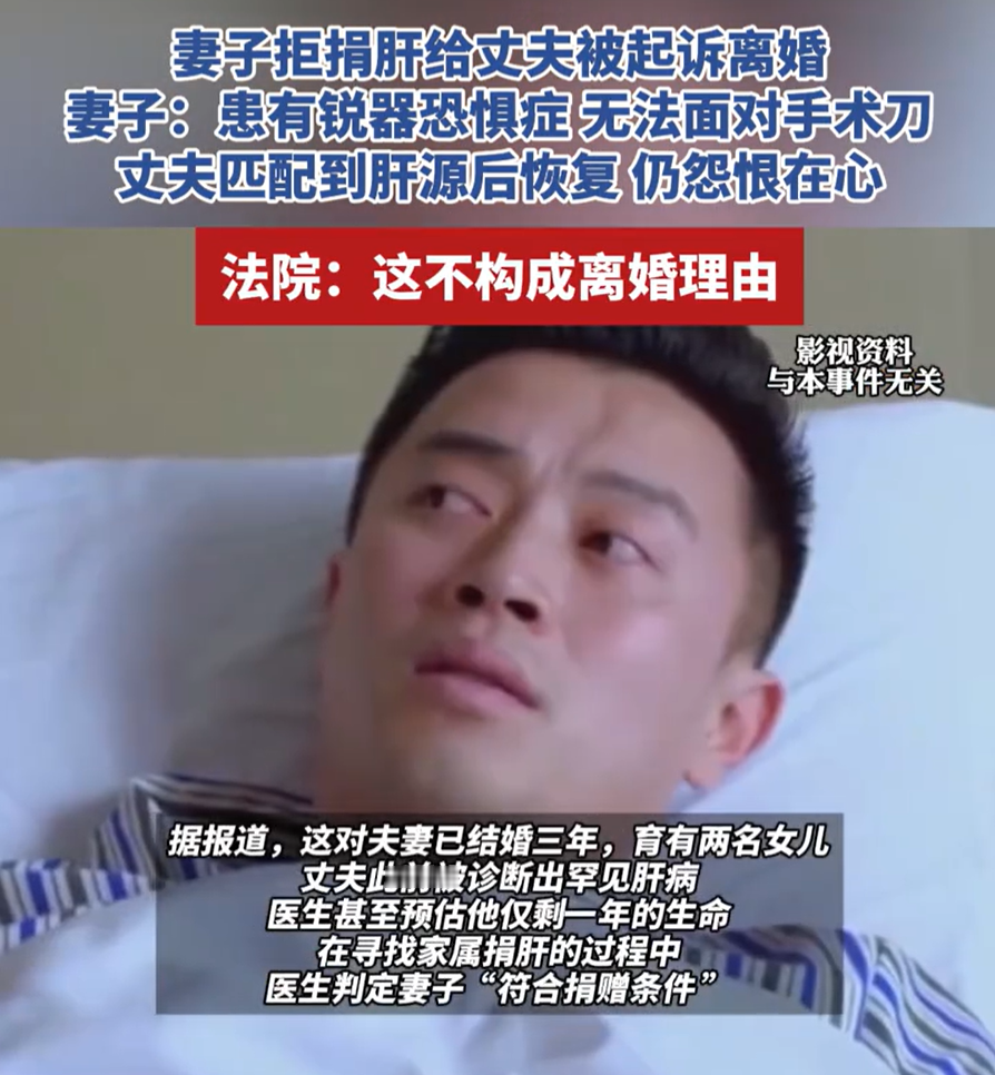 “这该不该离婚?”韩国一男子查出罕见肝病,医生告知如不手术,仅剩一年生命,家属在找肝过程中,发现男子妻子符合捐肝条件,可妻子却明确拒绝了,后面男子起诉离婚,法院告知:这不构成离婚理由