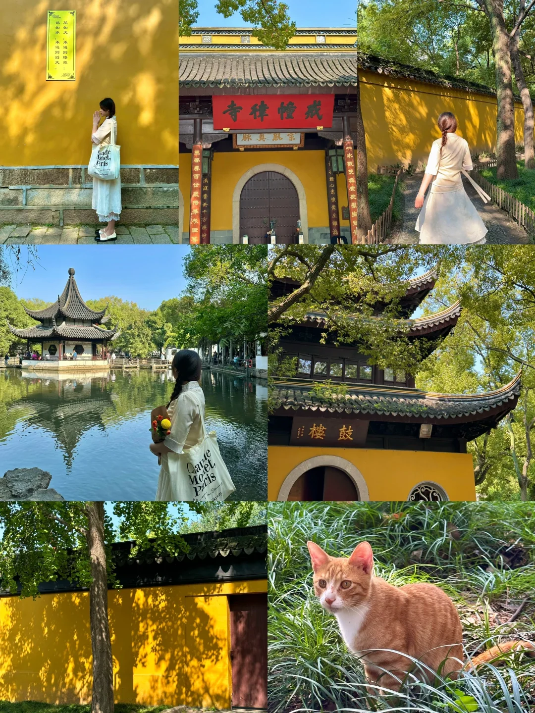 👉🏻素面很好吃,寺庙内有几十只猫,晴天黄墙树影真美!