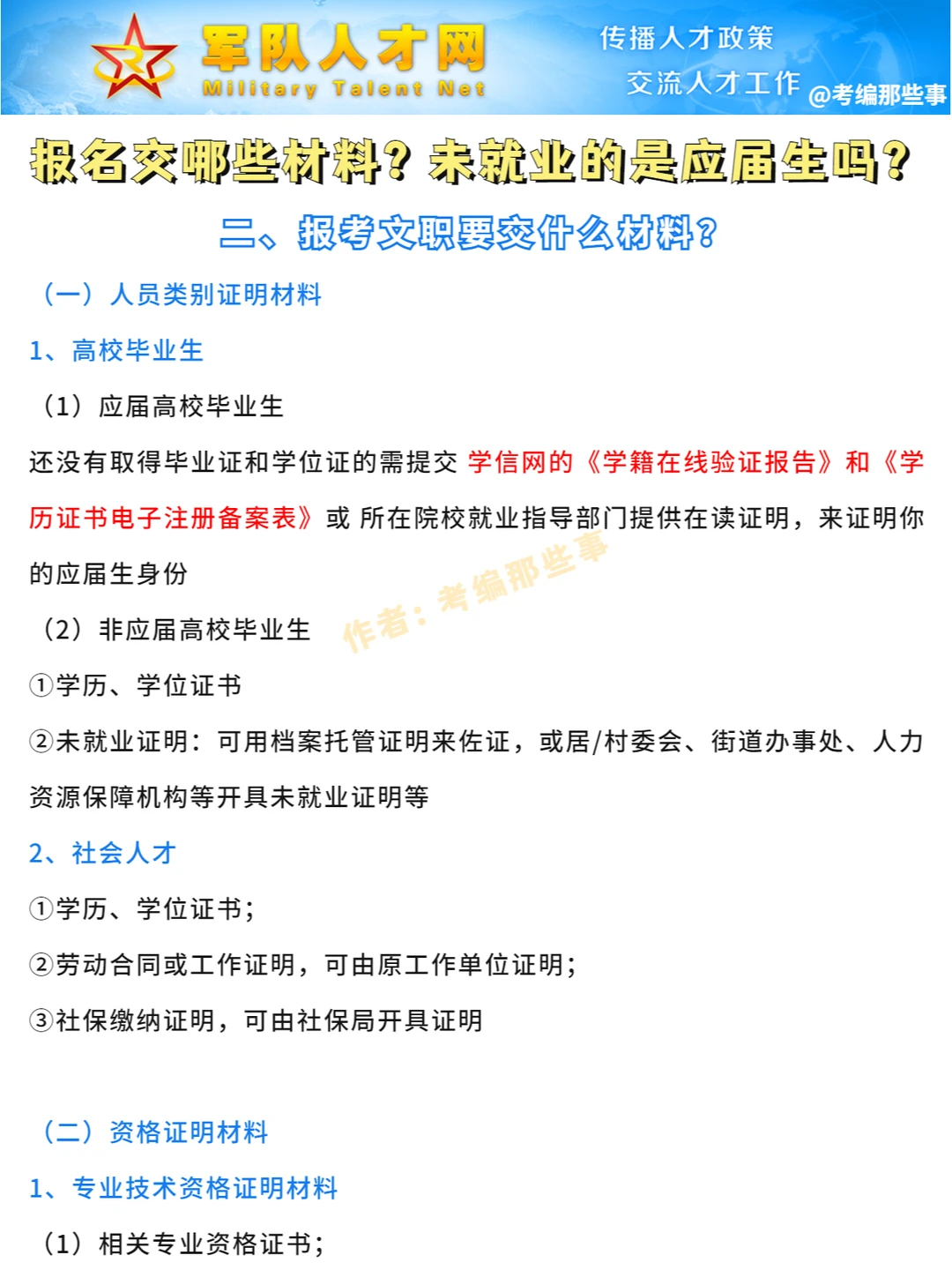 在了解2023军队文职报名要交哪些材料之前,要先知道自己是属于“高校毕业生”还是“社会人才”~