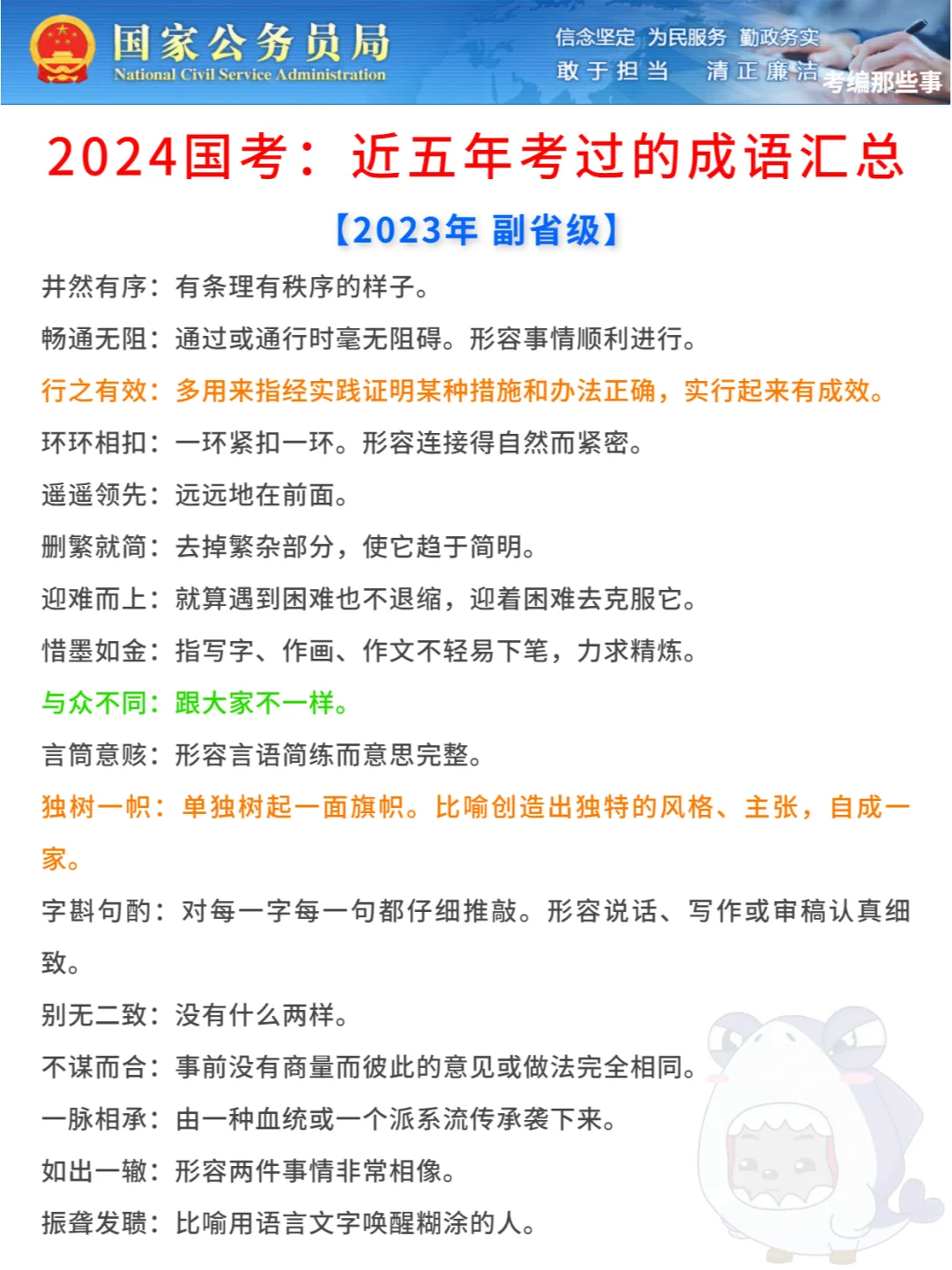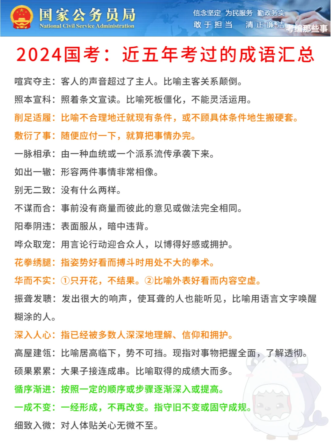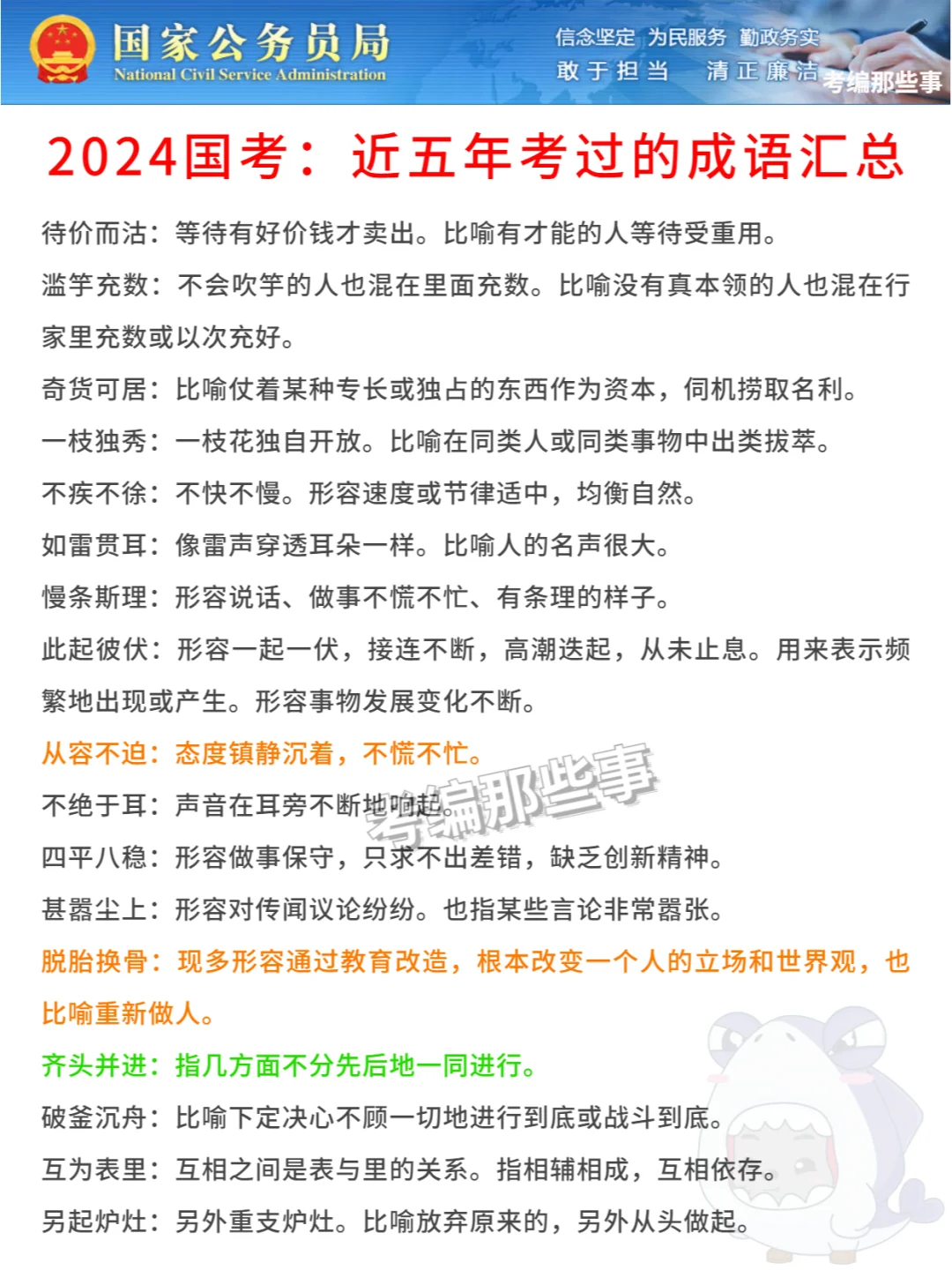 近五年国考-考过的成语汇总(篇幅有限),绿色字体代表“考过3次或3次以上”,橙色字体代表“考过2次”