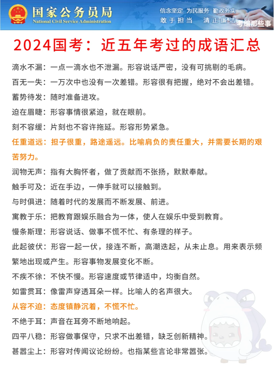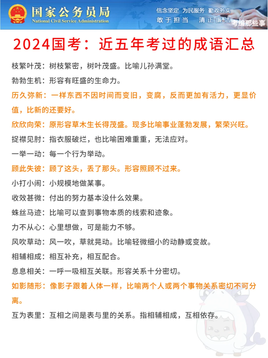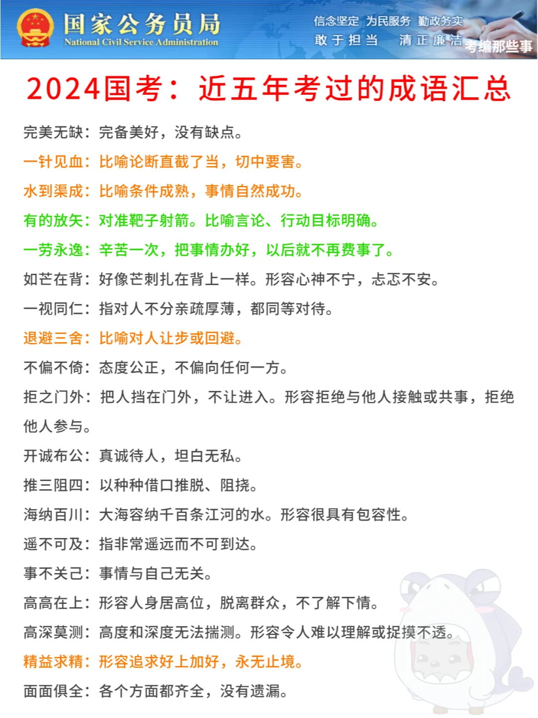 近五年国考-考过的成语汇总(篇幅有限),绿色字体代表“考过3次或3次以上”,橙色字体代表“考过2次”