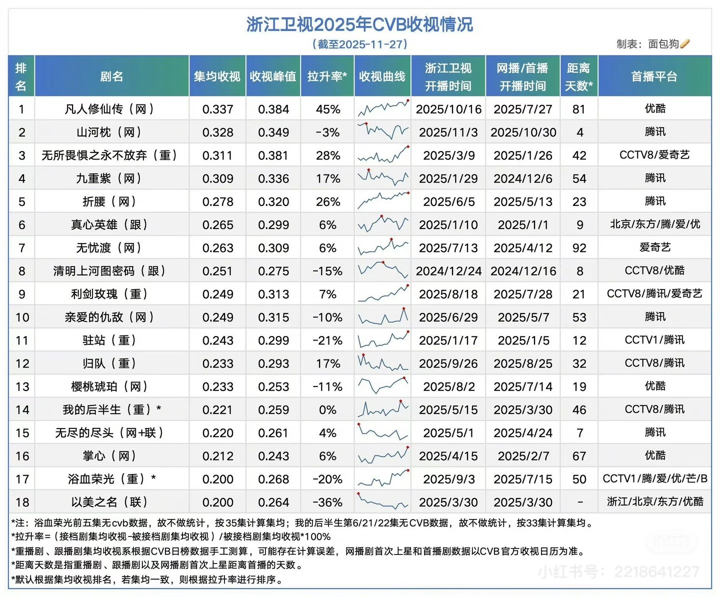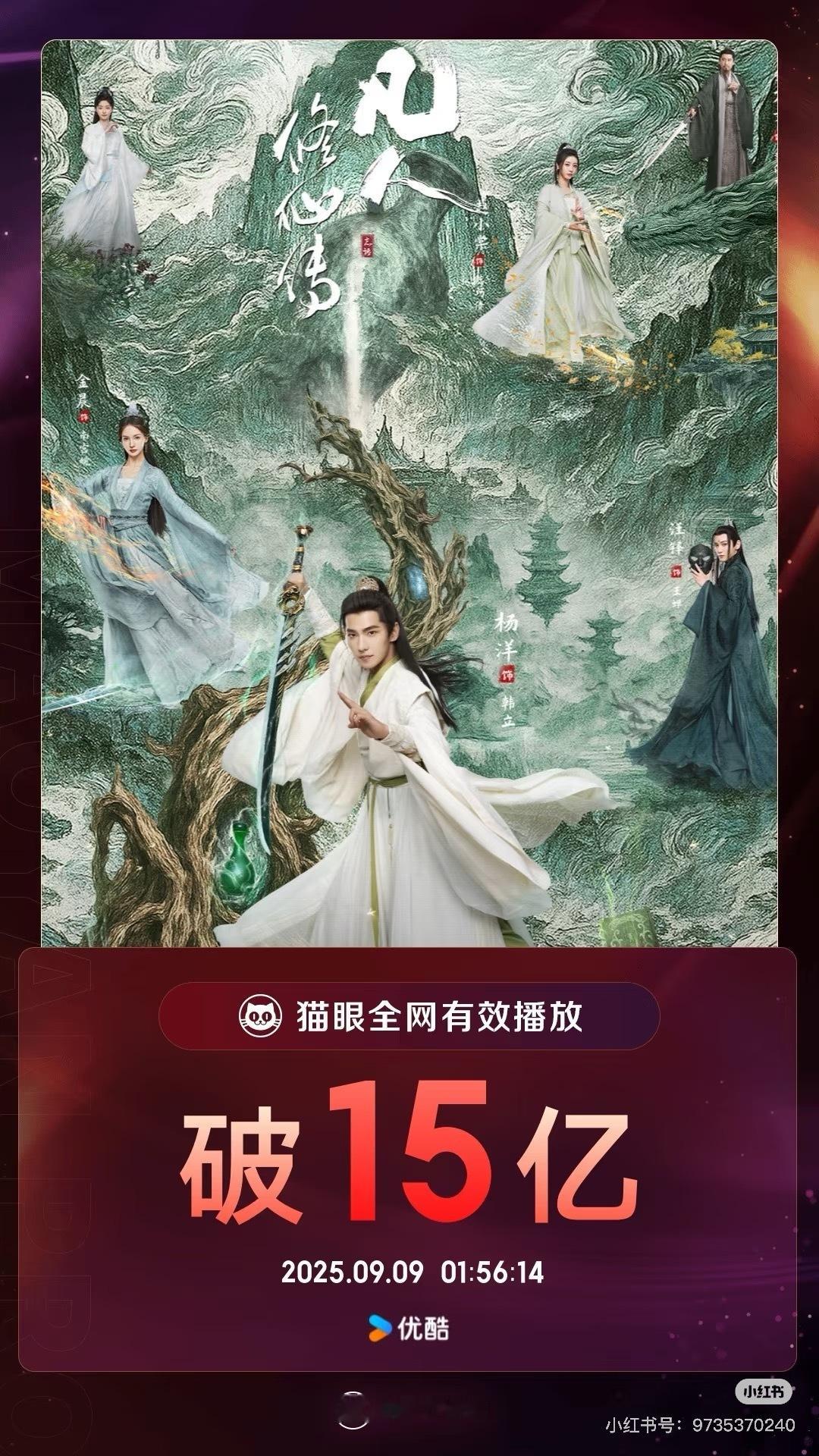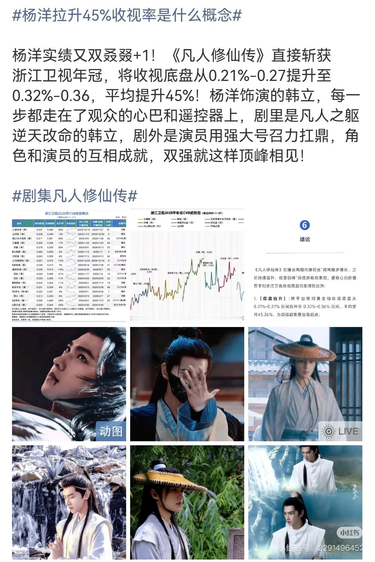 什么叫超长长尾效应,集均和收视可以直观的反映,数据来看凡人收视有三牛。第一牛在三天破万。7月27日首播,7月29日下午就轻轻松松破万了,也就是从首播到破万只用了50个小时。不靠CPU粉丝不靠反复💦数据靠自来水观众和强大的路粉盘三天破万超轻松,更爽的是这只是一个开端。第二牛在集均疯狂增长。9月9号有效播放15亿,集均五千。10月11号有效播放17亿,集均六千。站在非专业角度的我对这个数据最浅薄朴素的理解是,观众因为打心底认可觉得好看,所以自主搜索反复观看,表现出来就是过了宣传期集均还在酷酷增长。第三牛在收视线性拉升。回归最朴素的遥控器断层拉高浙江收视45%,从底盘拉到年冠,果然强者从不抱怨环境,专挑困难模式。数据最客观,观众多少、是否买账一眼就能看出来。因为喜欢看所以反复观看反复讨论,这样的观看和讨论自然而然就盘出了热度和二次返场。观众给杨洋的韩立干到返场了