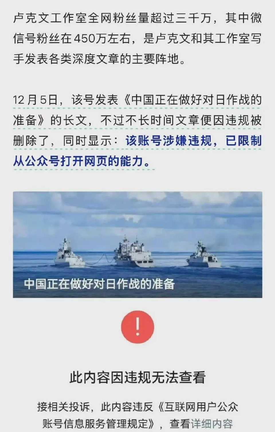 卢克文工作室被封了,早该封了。 一直就不能理解,为什么这么缺乏国际关系常识的人,居然能这么火。这老兄几年前支持本拉登被封后居然又复活了,但缺乏常识的人,犯错误是迟早的。可怕的是,像卢克文这样迎合网民口味的网络大咖,有着非常广泛的社会基础,拥趸者众,许多网民如果任由其胡咧咧,在社会上将会起着巨大的负面作用。