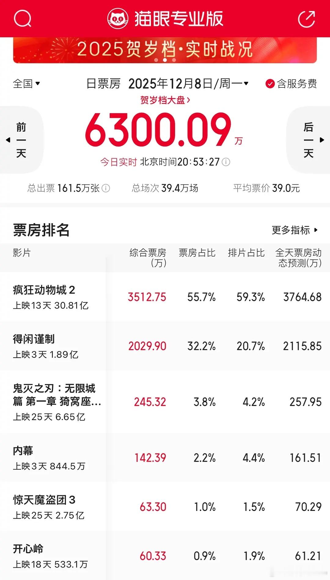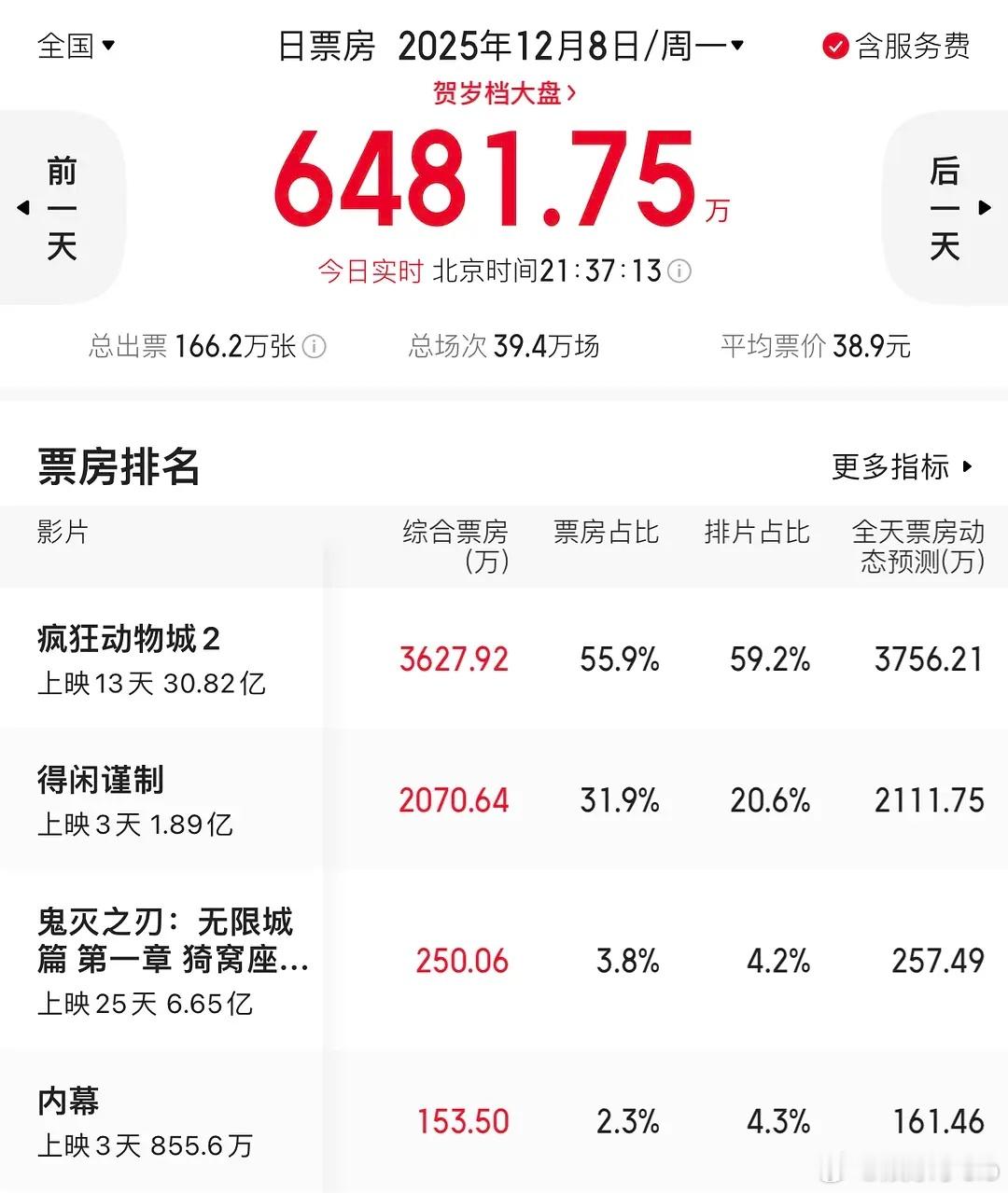 得闲谨制从首日倒挂7%到今日正挂10%,票房也破了2亿,猫眼预测连涨三天,彻底转守为攻了!