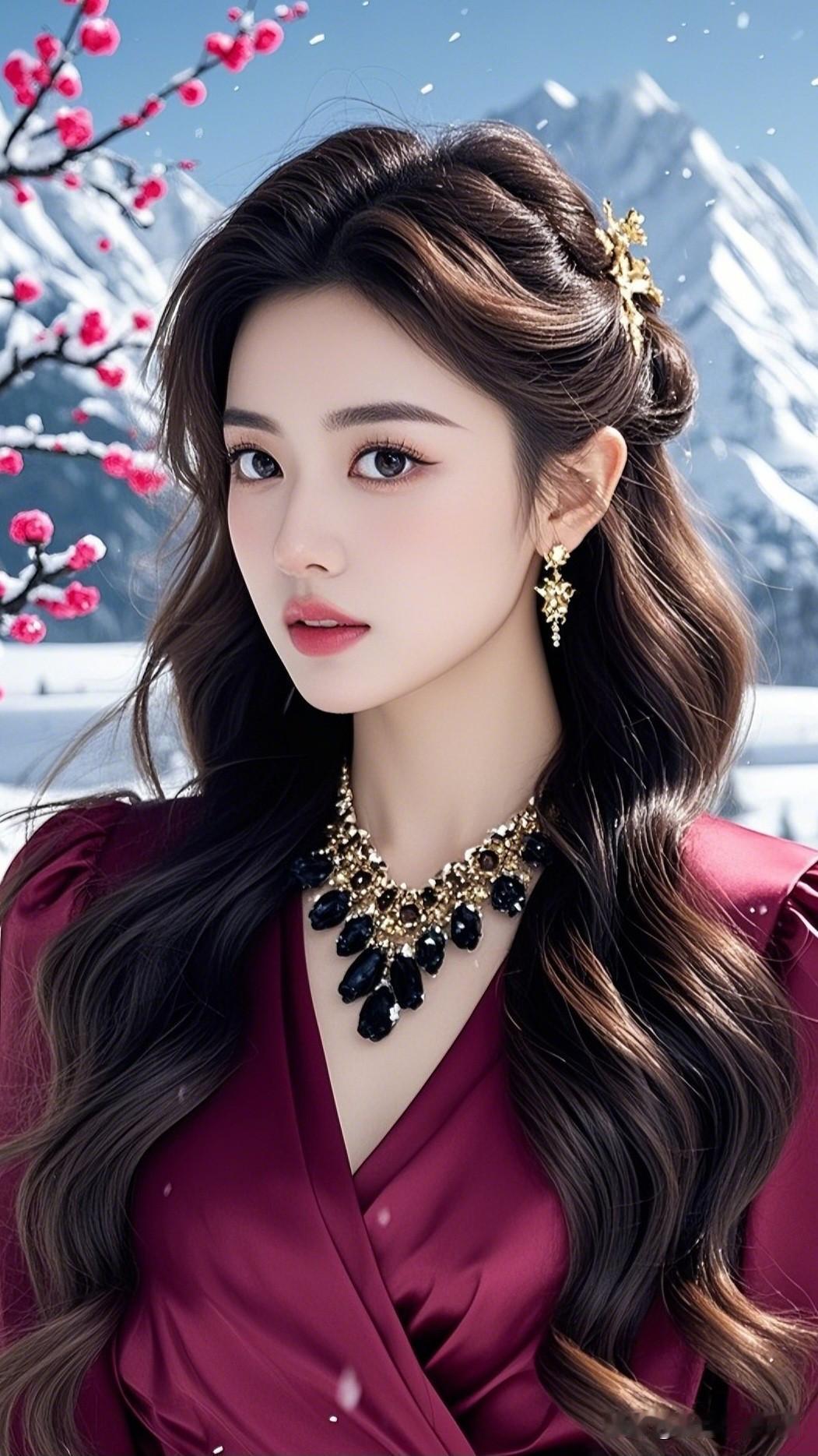 雪中红梅映,玉女戴金簪。你心中的美女啥模样 冬日雪景中的优雅美人,红衣金饰,美不胜收!🌨️💎💄