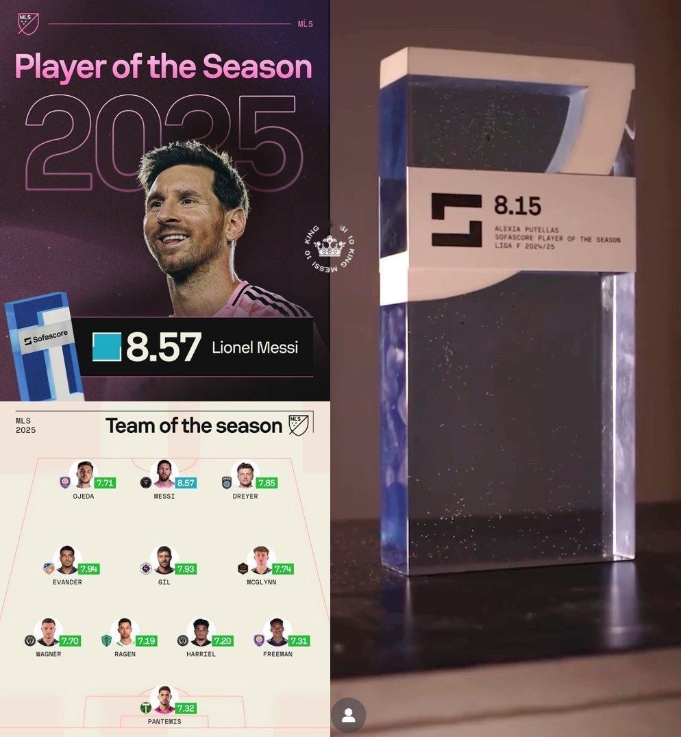 🥇梅西被Sofascore评为2025赛季MLS最佳球员👏并入选最佳阵容👏从 2023/24 赛季开始,SofaScore 开始为世界各地联赛中的最佳球员颁发奖杯。梅西球王梅西迈阿密国际超话梅西数据