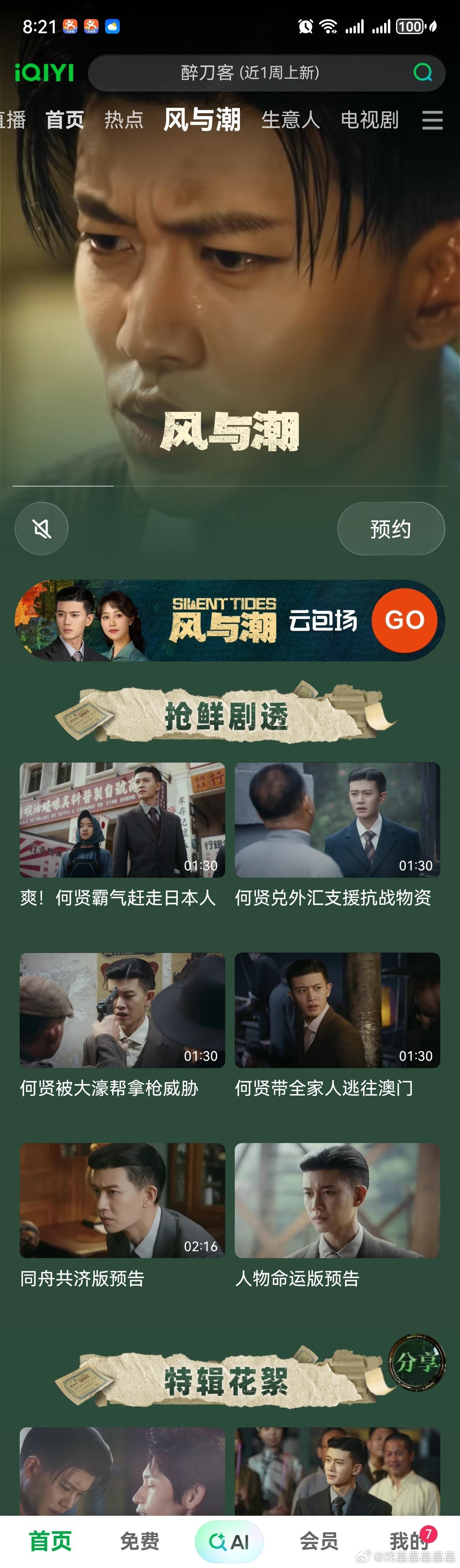 爱奇艺首页已经有《风与潮》专栏,前四集预告片来了,12月9日央视一台黄金档和爱奇艺同时开播!任嘉伦风与潮