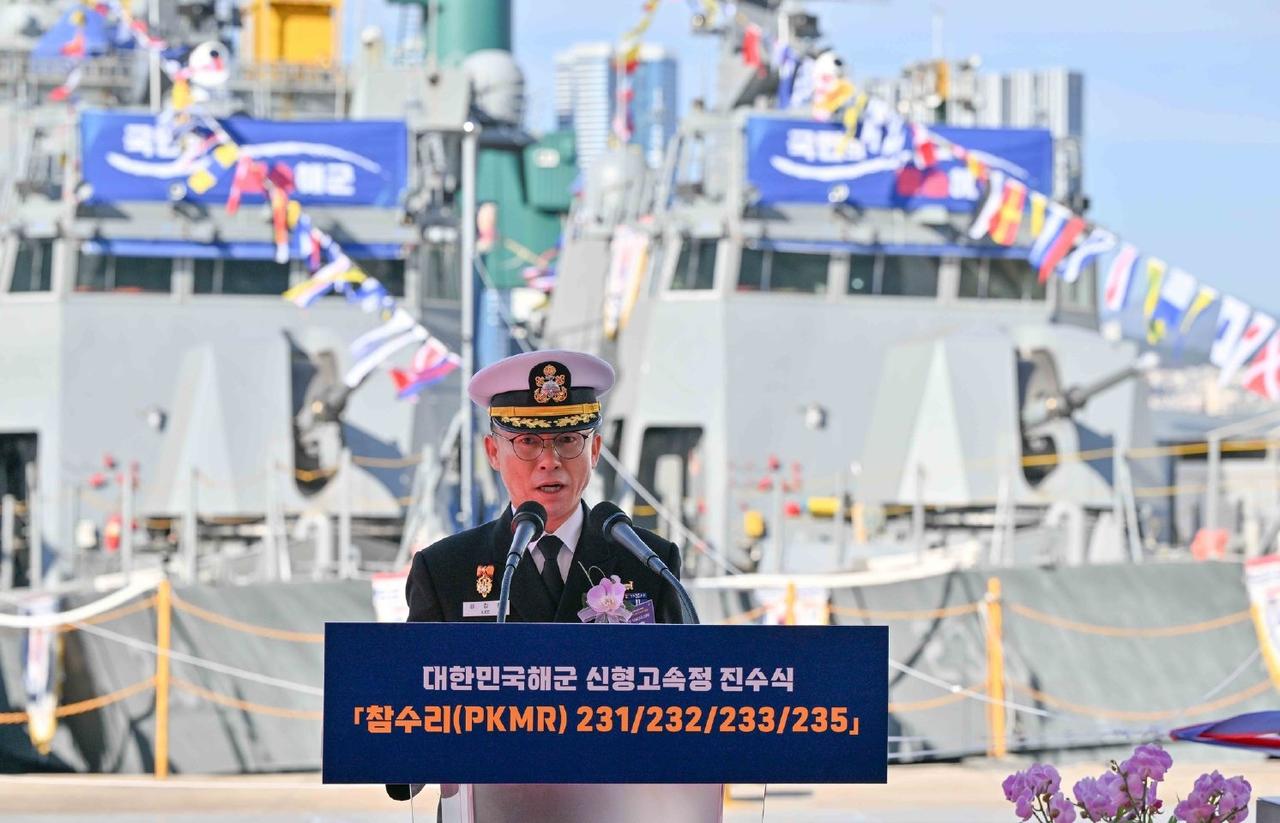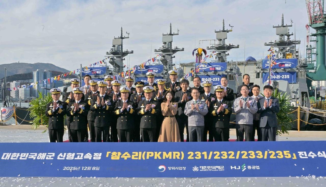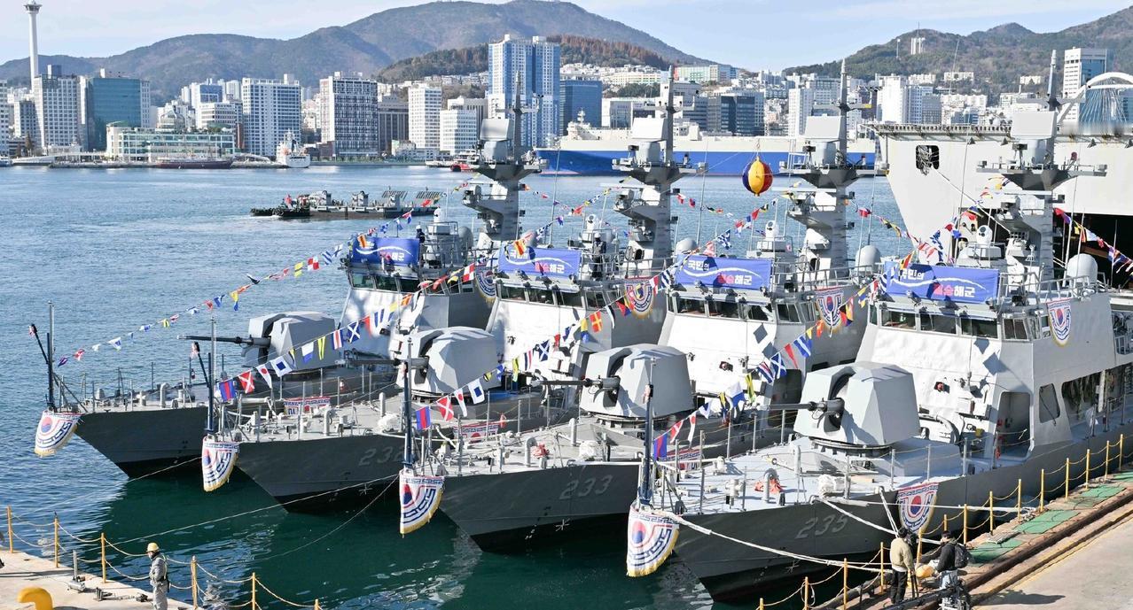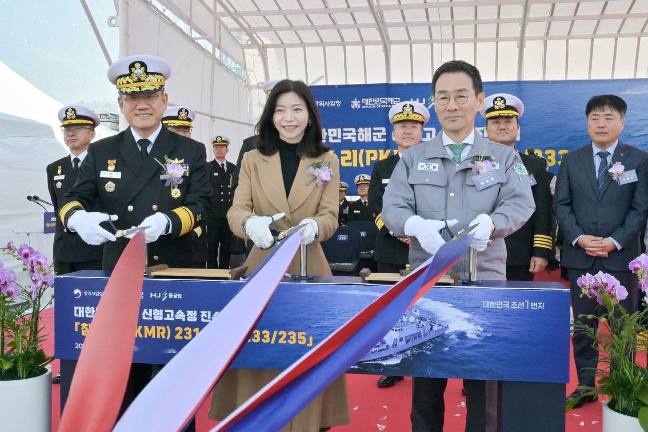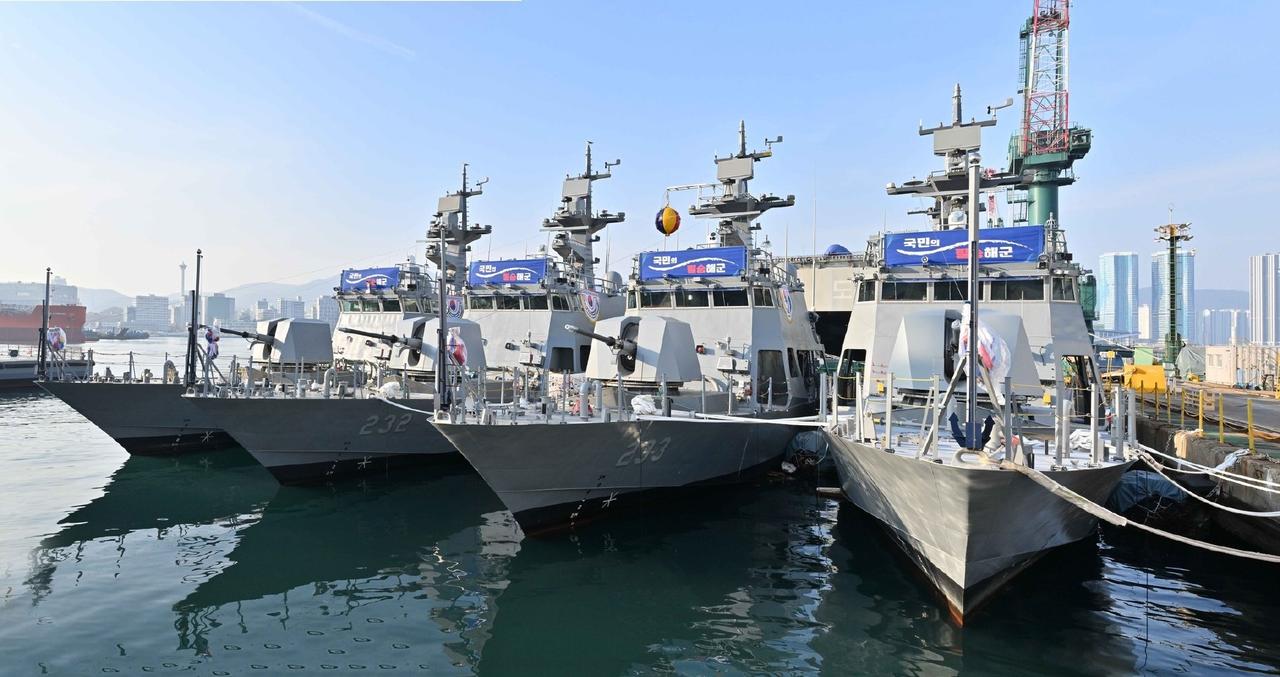 韩国也造"小舰扛大炮"巡逻艇!标准排水量230吨,却配备:1门76mm主炮(通常用于千吨级护卫舰);1座12联装130mm制导火箭发射器! 12月8日,在釜山市影岛区的HJ重工造船厂,韩国海军新型“猎杀火箭巡逻艇”(PKMR,230吨级)第二批次(Batch-Ⅱ)的第一至第四号舰艇联合下水仪式举行。四艘舰艇分别是“虎头海雕级”231号、232号、233号和235号巡逻舰。 ​​​ 武器配置突出“小舰扛大炮”特点,四艘艇(PKMR-231/232/233/235)标准排水量230吨,却配备: 1门76mm主炮(通常用于千吨级护卫舰); 1座12联装130mm制导火箭发射器,射程达20公里,具备"发射后不管"能力; 12.7mm遥控机枪及电子对抗系统。这种"吨位与火力倒挂"设计,专门针对朝鲜半岛近海高速拦截与反渗透作战