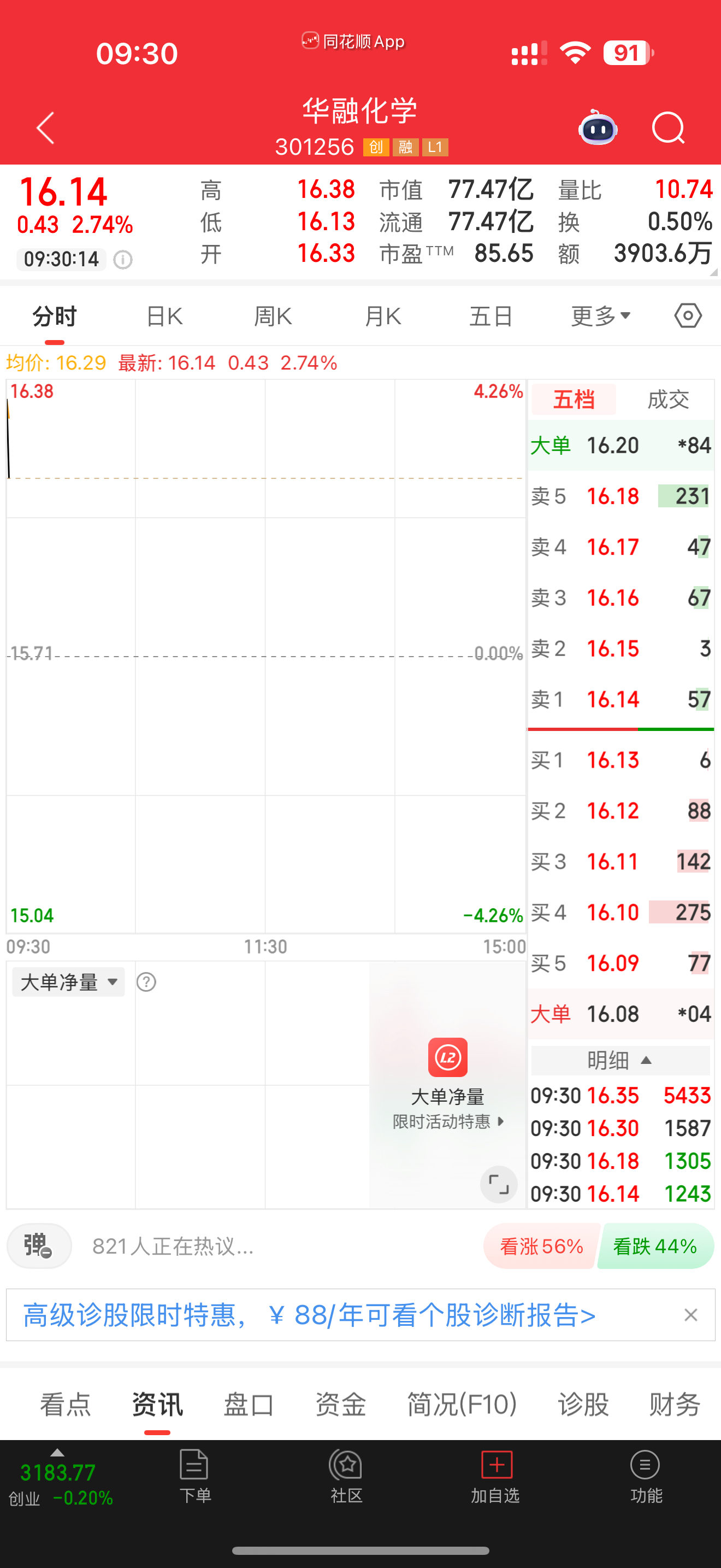 301256华融化学起飞,继续大涨有在车上的兄弟姐妹们出来互动一波888观望没上