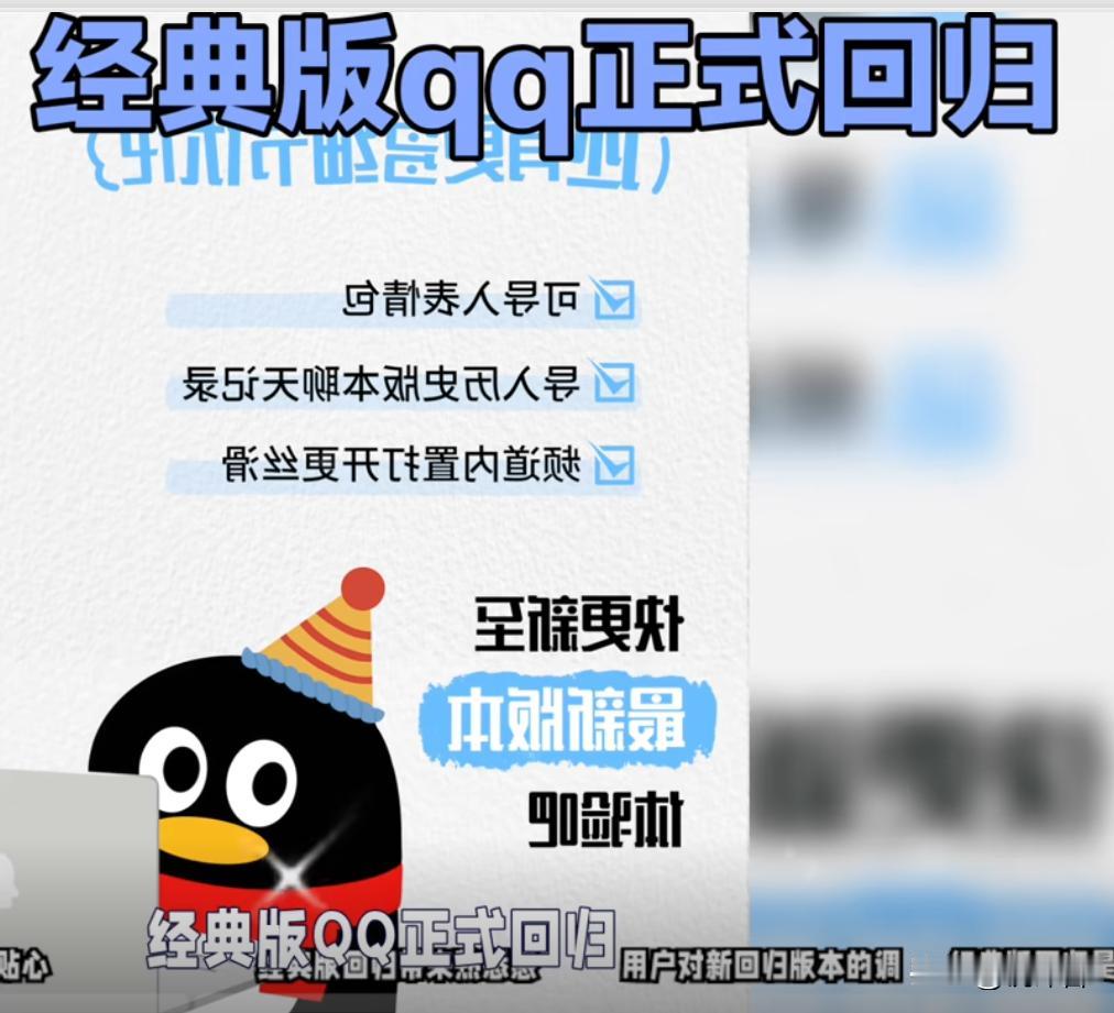 💥爷青回!经典QQ炸屏回归,双模式切换藏惊喜 “滴滴——”熟悉提示音响起,蓝色窄面板弹出手心,多少人的青春DNA瞬间动了?12月8日,@腾讯QQ 官宣炸屏,瞬间刷爆社交圈。 这次回归藏着大诚意!PC端QQ新增双模式一键切换,Windows更到v9.9.25、Mac更到v6.9.86版本,点右上角就能换。经典模式完美复刻窄面板+独立聊天窗,贴边拖到屏幕边缘还能自动隐藏,打工人秒变“摸鱼高手”;效率模式保留三栏布局,办公传文件超省心。 本以为只是情怀杀,没想到反转更惊喜!当年要充会员的调色盘现在全免费,上传老照片就能做专属主题,连聊天气泡都能自定义。批量导表情包、恢复历史聊天记录,那些火星文留言全回来了。 你的QQ列表里,还躺着不敢点开的对话框吗?最想找回哪段青春记忆?评论区聊聊~ 经典版QQ回归 PC端QQ支持双模式切换 QQ青春回忆杀