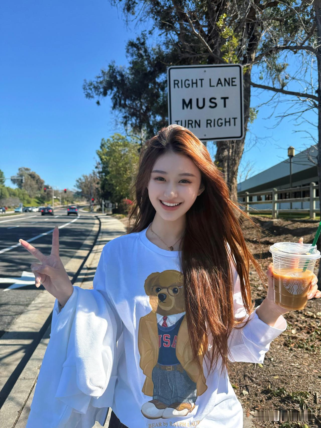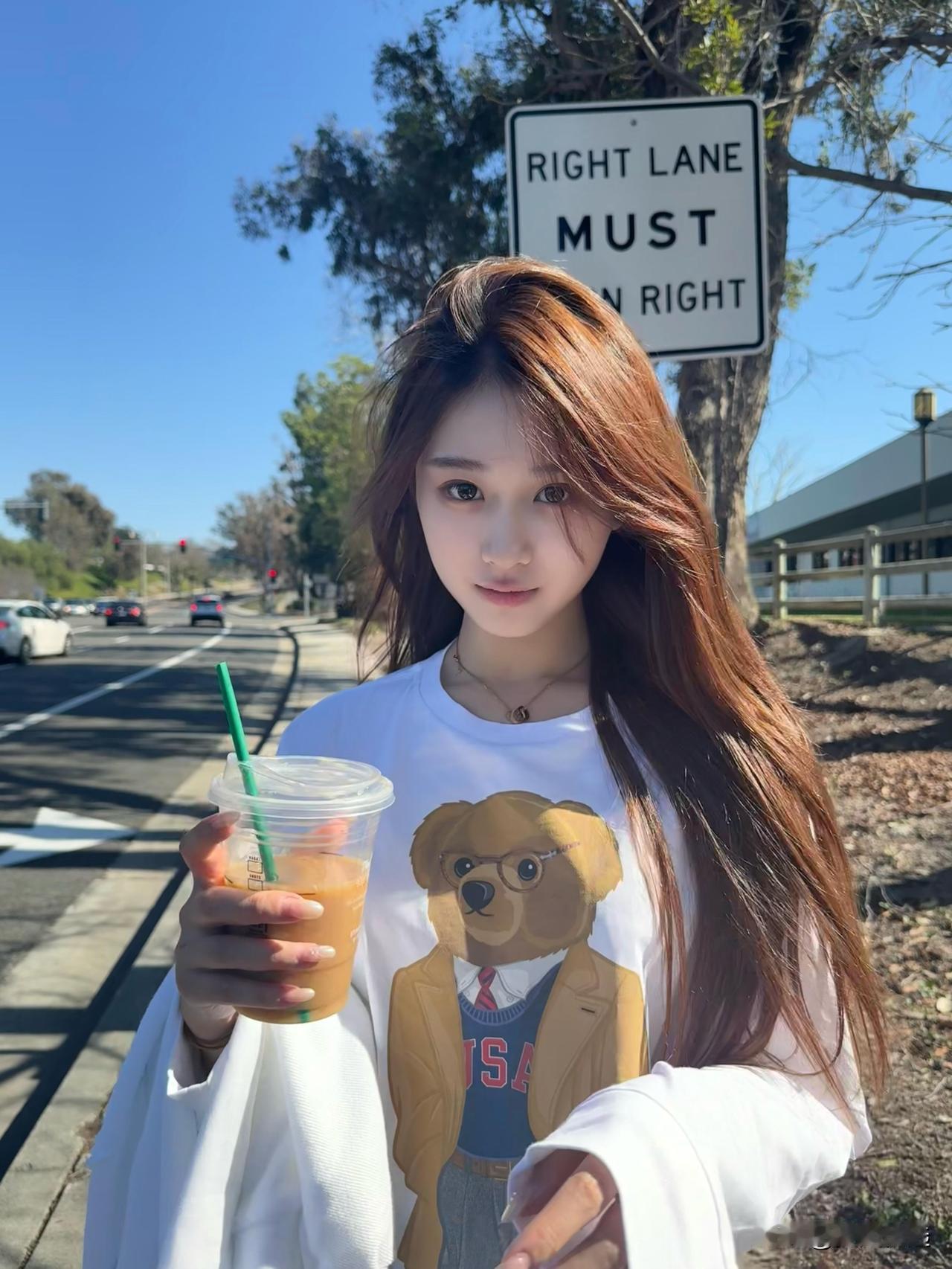 清纯甜美少女在阳光明媚的街头,一杯咖啡,一身运动装,元气满满的一天!🌞📸