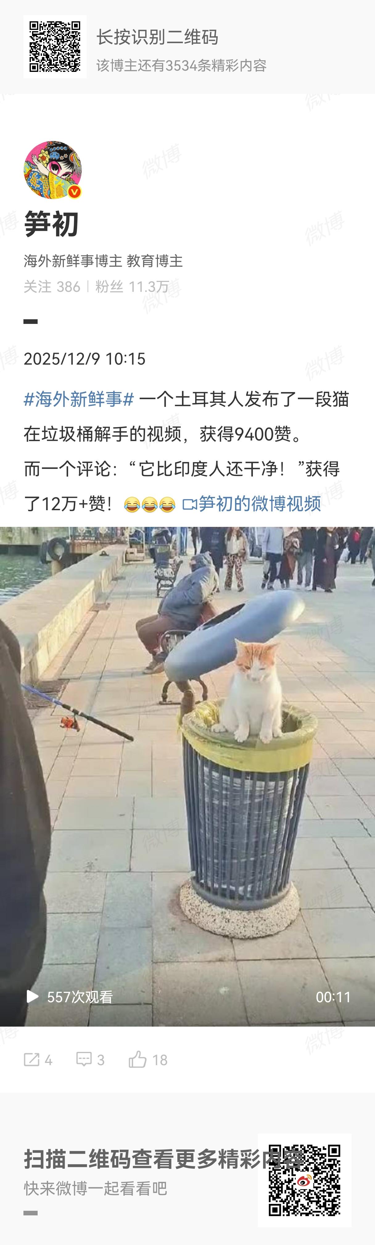 一个土耳其人发布了一段猫在垃圾桶解手的视频,获得9400赞。最热的一条评论:它比印度人还干净!这条评论获得了12万+赞。印度人为什么在短短一年实现了口碑反转的?直接从文明灯塔到文明暗礁,从欧美吹捧变成了欧美唾弃。归结起来还是国力不够,当国力足够强大的时候,即使在自由女神像上去干点啥,欧美人还会一味吹捧说是行为艺术。