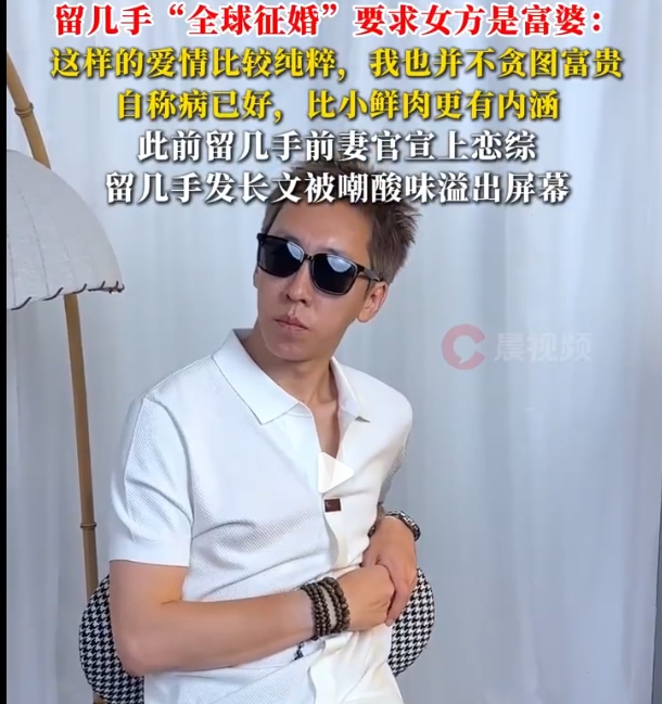 近日,网红留几手在网络上发文公开征婚,表示很多小女生对自己这个离异老男人表现出极大的兴趣,可自己有自知之明,知道背后真实的原因是什么,也不想耽误人家。