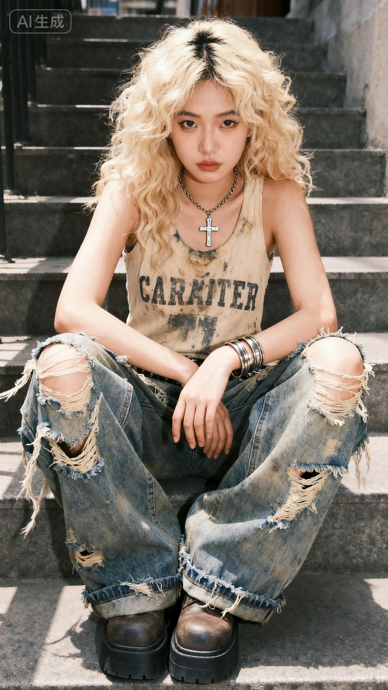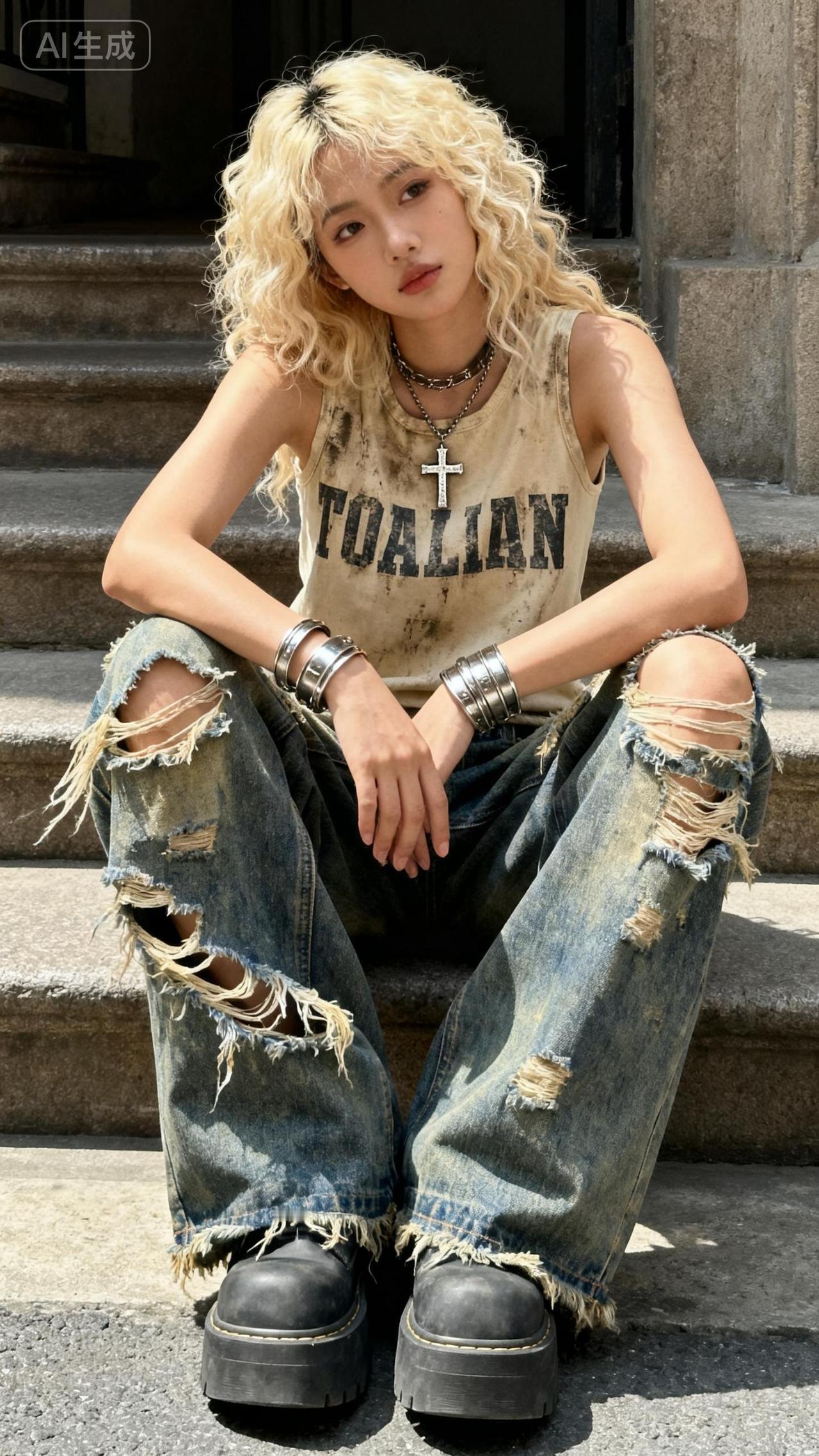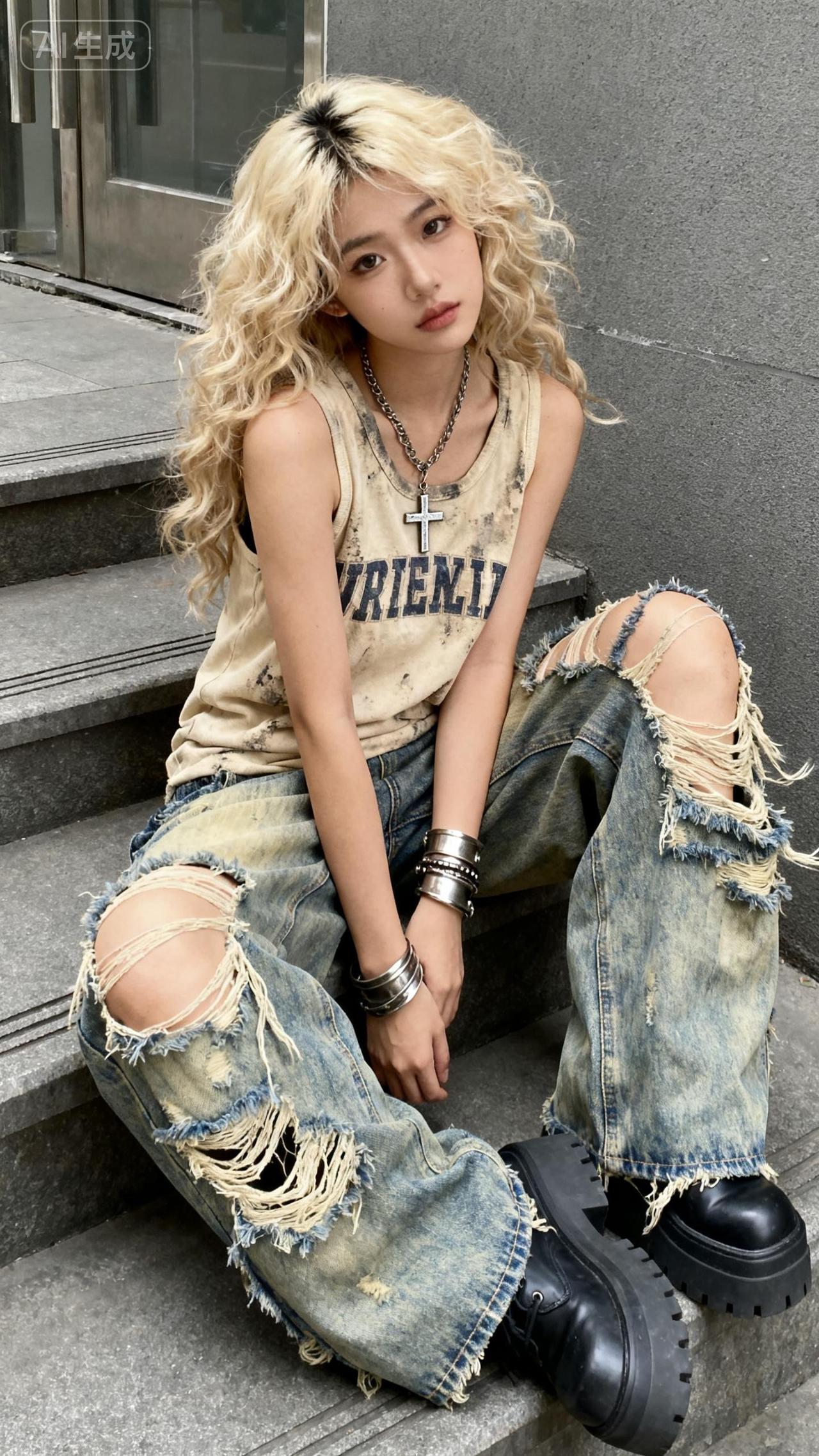 复古风穿搭,破洞牛仔裤搭配复古T恤,酷炫有型!👕👖👢拍摄人像最重要的是模特的表现力么