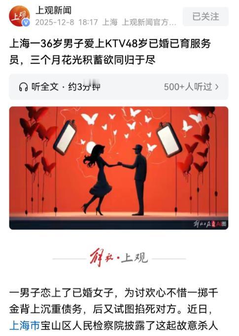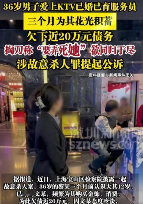 上海,36岁男子和朋友去KTV唱歌时,认识了陪他们喝酒的女服务员。男子和对方相谈甚欢,尽管得知对方比自己大了12岁,已婚且有2个孩子,男子还是频繁的给女子买黄金手链、项链,找女子订包间,花光积蓄后,男子还借了20万。可没想到,女子对他还是爱搭不理,男子心生怨恨,趁女子点歌,从背后掐住女子的脖子,女子被掐晕后,男子放弃施暴,女子安抚好男子,从包间逃出,向同事求助,才躲过一劫,可男子却悲剧了。 黎某的困境,始于长期单身带来的情感饥饿,36岁的他,体重近300斤,性格内向寡言,十多年来始终没能走进一段稳定的亲密关系。 在婚恋观念相对传统的社会环境中,这种“偏离主流”的状态让他逐渐陷入焦虑,甚至产生了“单身即失败”的扭曲认知。 他渴望被理解、被需要,却又因为社交被动,难以在现实生活中建立深度情感联结,2025年3月,KTV成了这场悲剧的起点。 陪酒服务员文某的出现,像一束光照亮了黎某灰暗的生活,文某比他大12岁,已婚且育有两子,因家庭经济拮据、缺乏其他谋生技能,才选择这份靠提成和小费补贴家用的工作。 或许是职业习惯的礼貌回应,或许是酒精催化下的短暂共鸣,文某与黎某的闲聊,被长期孤独的黎某解读为“灵魂契合”的信号。 即便文某当场坦诚了自己的婚姻状况,黎某也不愿相信这是“拒绝”。 他在心里构建了一个自欺欺人的剧本:文某只是暂时被家庭束缚,只要自己足够真诚、足够投入,总有一天能打动她,这种脱离现实的幻想,成了他后来疯狂投入的精神支柱。 黎某表达“爱意”的方式,简单而粗暴,就是用钱砸,他错误地认为,物质付出是弥补情感距离、打动对方的唯一筹码。 为了让文某多赚提成,他频繁光顾KTV,每次都点最贵的酒水;听说文某喜欢首饰,他毫不犹豫地买下黄金手链、项链,全然不顾自己微薄的工资根本支撑不起这样的挥霍。 文某曾明确拒绝过这些贵重赠与,但黎某却将这份职业操守层面的边界感,曲解为“不好意思接受”的矜持。 他沉浸在自己编织的“付出就有回报”的梦境里,越陷越深,积蓄很快见底,可黎某已经停不下来了。 为了维系这份虚幻的“情感连接”,他开始向朋友借钱,甚至背上了高额网贷,短短三个月,他的债务就飙升至近20万元,而他所期待的“情感回应”,却始终没有到来。 文某的态度越来越冷淡,从最初的礼貌回应,变成了刻意回避,不再回复他的微信,见面时也保持着明确的距离。 对黎某而言,这种冷淡不是边界的提醒,而是“付出未获回报”的背叛,他的情绪像一口不断加热的压力锅,压力在持续累积,只等着一个爆发的临界点。 案发当晚的拒绝,成了压垮骆驼的最后一根稻草,黎某再次来到KTV订下包厢,点名要求文某陪酒,几杯酒下肚,酒精放大了他的委屈与愤怒。 当他试图拉文某的手,却被对方毫不犹豫地推开时,长期积累的负面情绪瞬间失控,他失去了所有理性,双眼通红地从背后扑上去,双手死死掐住了文某的脖颈。 近300斤的体重带来的绝对力量差距,让瘦弱的文某毫无反抗之力,仅挣扎了几下就瘫软在地,失去了意识。 直到此刻,黎某才猛然惊醒,他慌乱地用椅子抵住包厢门,颤抖着伸手探向文某的鼻息,感受到微弱的呼吸后,内心的恐惧和悔意取代了愤怒。 他放弃了继续施暴的念头,而这个举动,也成为后来司法机关认定其“犯罪中止”的关键依据。 文某苏醒后,强忍着颈部的剧痛和内心的恐惧,用温柔的语气安抚黎某,趁他情绪稍缓的间隙,借口上厕所逃出了包厢,在走廊里撞见同事后,才终于得以求救。 KTV负责人赶到后,看到文某脖子上清晰的掐痕,当即介入调解,文某明确表示,愿意归还所有赠与的首饰,只求从此与黎某划清界限。 但黎某此时已经陷入了偏执的矛盾中,他一边哀求复合,一边又说出,你没死就算了,我也不想死了,这样混乱的话。 僵持之下,他甚至主动要求报警,可当民警赶到现场后,他又突然掏出随身携带的水果刀,情绪激动地嘶吼,我今天带刀来,就是要弄死她! 民警当场控制住黎某,将他带回派出所调查,上海市宝山区人民检察院经审查认为,黎某主观上具有剥夺他人生命的故意,且已着手实施犯罪行为,其行为已构成故意杀人罪。 但考虑到他在犯罪过程中自动放弃继续施暴,有效防止了死亡结果的发生,符合《刑法》第24条规定的犯罪中止情形,最终以故意杀人罪(中止)对其提起公诉。 根据法律规定,故意杀人罪的法定刑为死刑、无期徒刑或者十年以上有期徒刑,情节较轻的处三年以上十年以下有期徒刑,而对于中止犯,造成损害的,应当减轻处罚。 KTV等娱乐场所的特殊环境,很容易营造出“被理解、被崇拜”的虚幻氛围,这种精心设计的“情绪价值”,对情感缺失的人来说,极具迷惑性。 但本质上,这只是一种明码标价的服务,一旦脱离那个场景,所谓的“灵魂契合”便会瞬间崩塌。