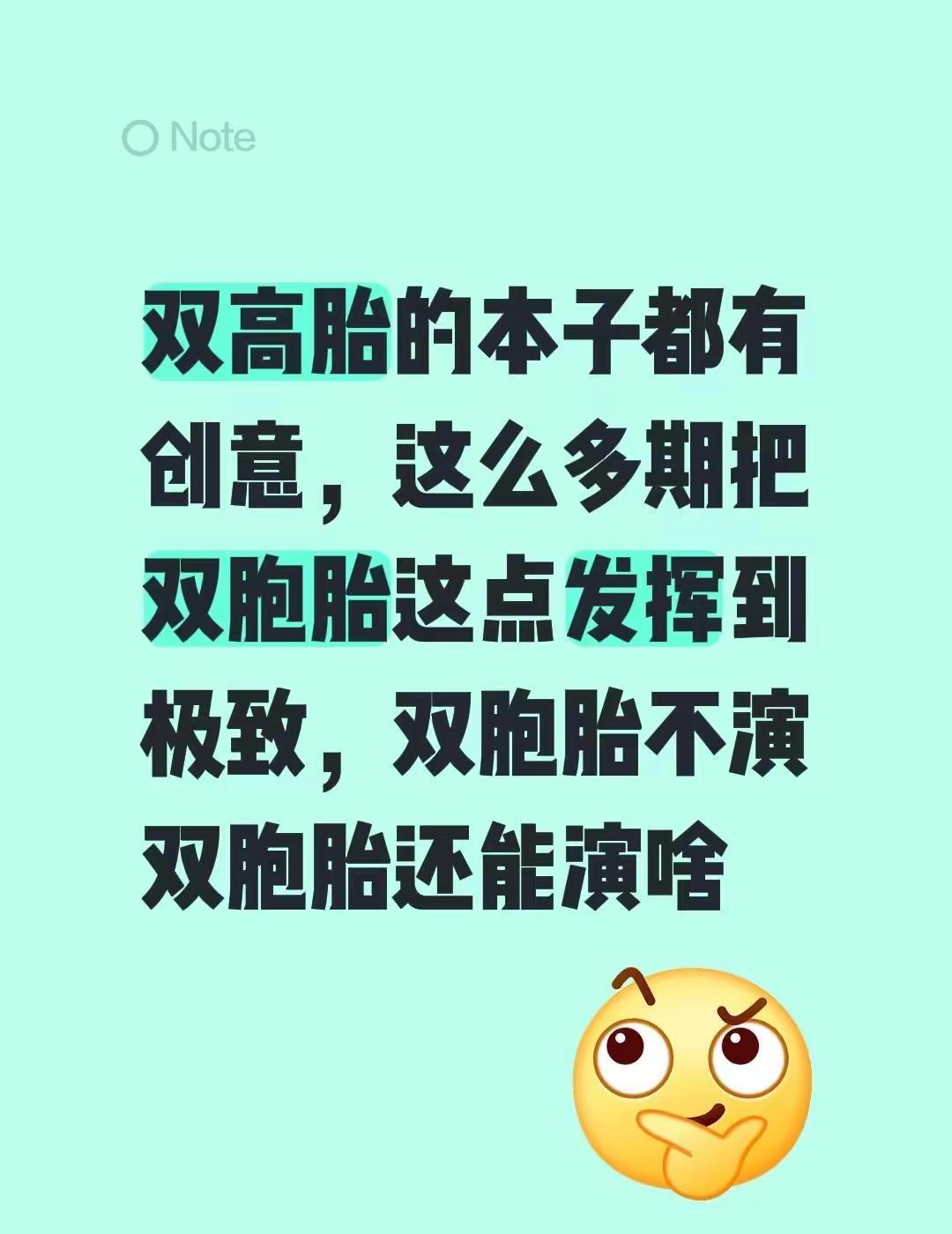 双胞胎的默契,真是天生的。 一个眼神,就知道对方想啥。 这种神奇,谁不羡慕? 最近刷到的"双高胎"创意,绝了。 两个长得一模一样的人, 一个唱红脸,一个唱白脸。 配合得像一个人分身。 以前看双胞胎节目, 总觉得尴尬又做作。 这次不一样,自然又真实。 连我这种路人粉都看进去了。 最绝的是他们那些小动作, 一个皱眉,另一个就递水。 一个咳嗽,另一个就拍背。 这种默契,装都装不出来。 现在才明白, 双胞胎不只是长得像, 更是灵魂相通啊。 这大概就是所谓的"心有灵犀"吧。 你们身边有这样的双胞胎吗? 那种默契程度,真的让人羡慕嫉妒恨。