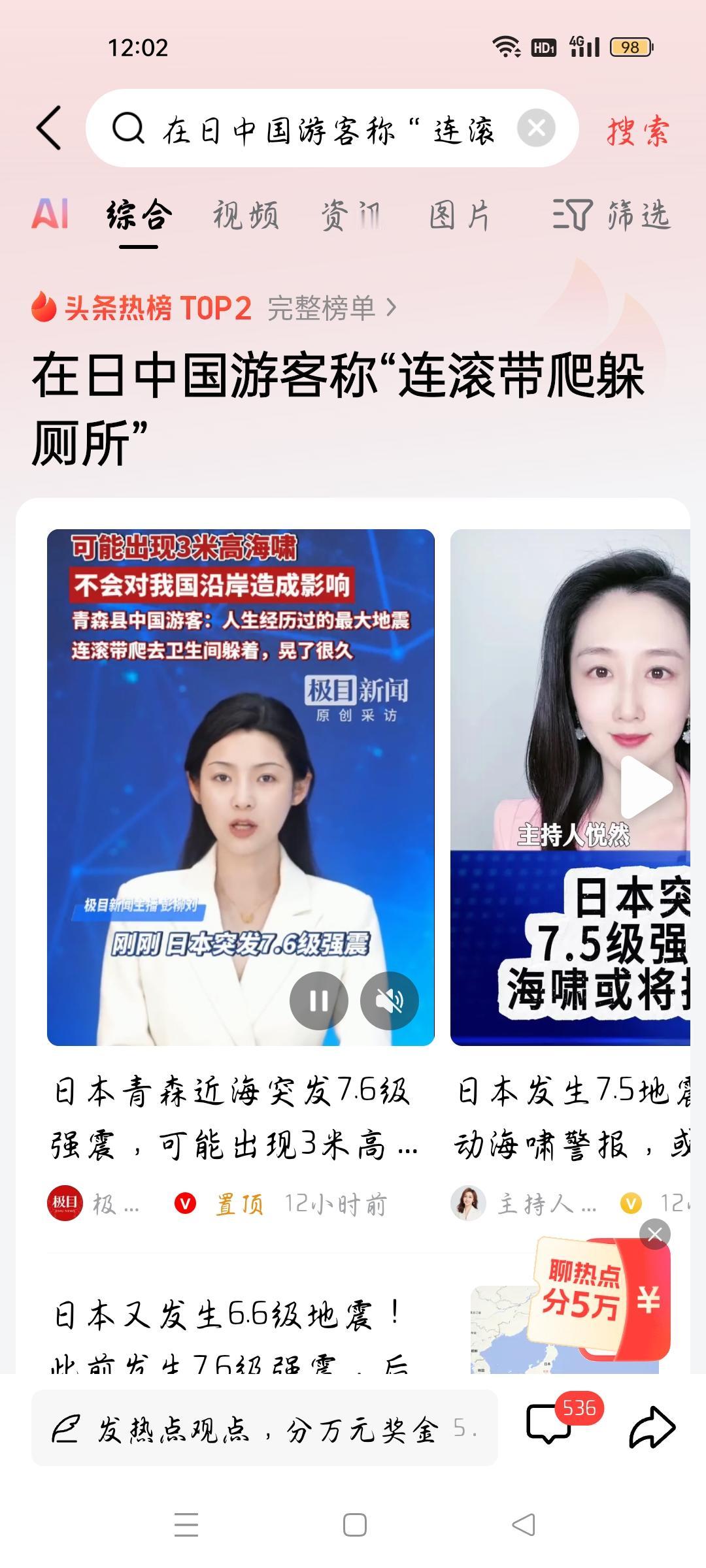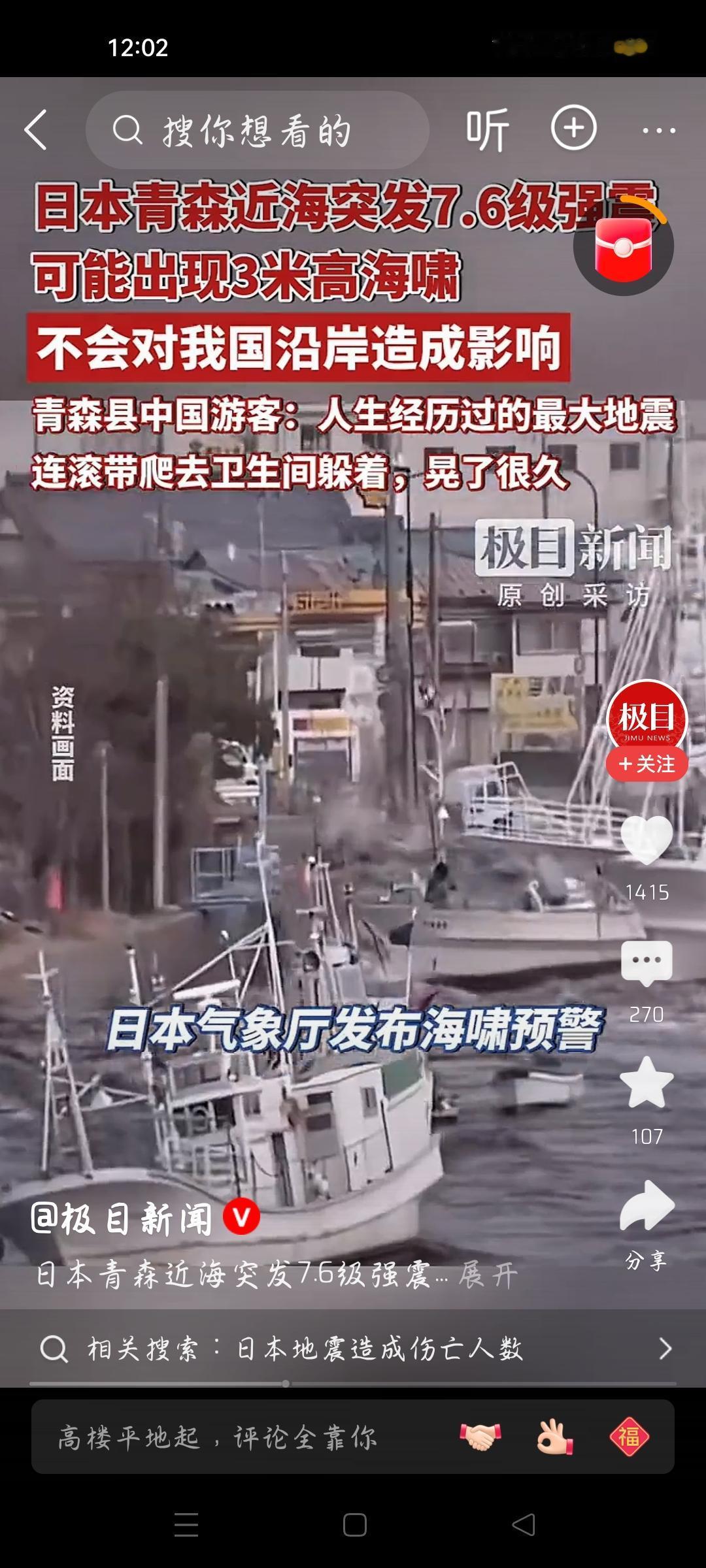 在日中国游客称“连滚带爬躲厕所",我想说 据极目新闻报道,日本青森县近海突发7.6级地震,在青森的中国游客称“连滚带爬躲厕所,晃了很久",我想说,中国外交部早就发布赴日旅游预警,可是还有人赴日,没有经历打劫,经历了地震,游客说,这是他经历的人生最大地震,众所周知,日本是一个地震多发国家,在日游客经历地震,也许学会了一些地震求生知识,学会一些技能。不过没有因为旅游,而丧失生命,这是这些游客最大的幸运。各位条友觉得呢?