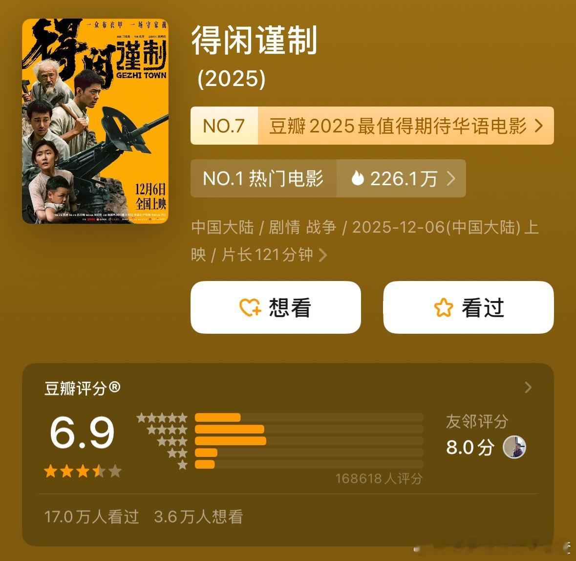 电影《得闲谨制》豆瓣开分6.9分 高了低了