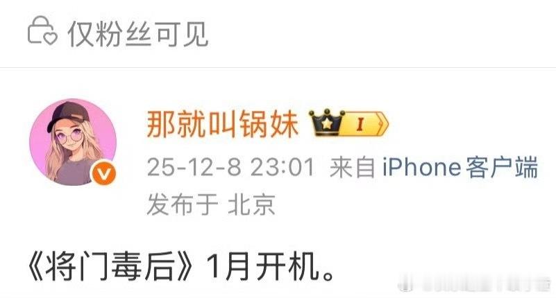 瓜主爆料王鹤棣孟子义的将门毒后会以从来没见过的形式平番官宣,下个月开机。