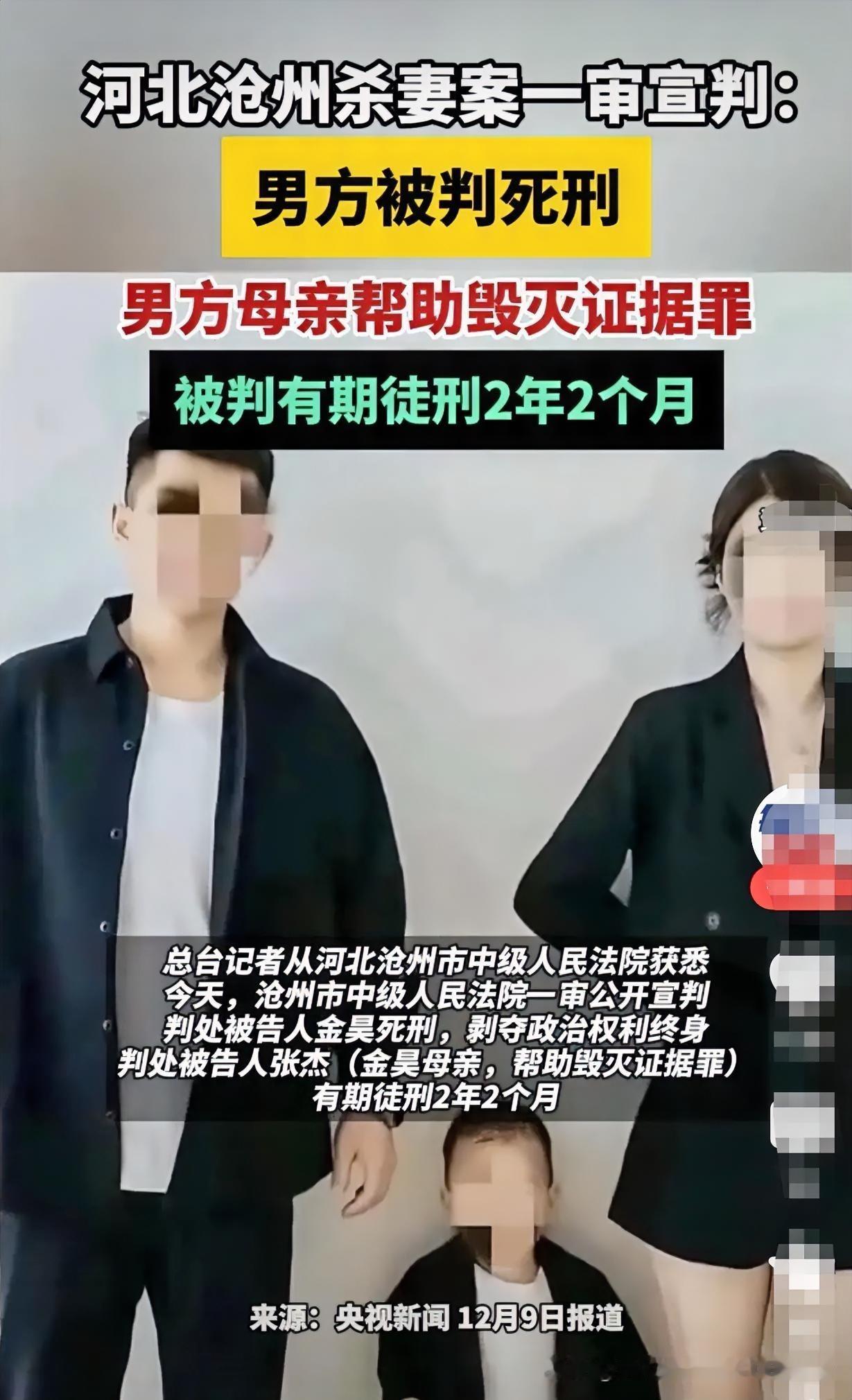 那个制造假证明的医生呢? 怎么没有说法呢? 大伙儿应该都刷到了吧?今天(12月9日)沧州孟村那个杀妻案,一审结果出来了——凶手金昊直接判了死刑,剥夺政治权利终身,他那个帮着洗血床单、毁监控的妈,也判了2年2个月。 按说这结果大快人心,毕竟金昊太不是东西了!对老婆长期家暴,最后一次直接下了死手,折磨一个多小时把人打死,法医说死因是颅脑损伤,想想都让人难受。他妈更甭提,儿子杀人了不报警,还帮着毁证据,判刑一点不冤。 今天看完判决结果更纳闷了——之前不是说,金昊杀了人之后,还有个医生帮着造了假的死亡证明吗?说是想把“他杀”往别的方向瞒,帮着掩盖罪行。 咱不是懂法但就凭直觉说:死亡证明那是啥?是能随便瞎写的吗?那可是正经法律文件啊!这医生明知人可能死得蹊跷,还敢造假,这不就是帮着凶手糊弄事儿吗?要是当初真被这假证明蒙混过去了,受害者的冤屈找谁申去? 结果现在一审判完了,凶手死刑、婆婆坐牢,唯独这个造假死亡证明的医生,判决里半个字没提,也没说有没有被调查、会不会判刑。 网上好多人跟我一样纳闷,有网友说“这医生指定跟金昊家有关系,不然谁敢冒这险”,还有人说“造这种假证,不算帮凶吗?咋就没个说法呢?” 说实话金昊和他妈得到惩罚,是受害者应得的公道,但那个医生的事儿不解决,总觉得心里堵得慌。毕竟法律不该放过任何一个帮着作恶的人,对吧? 你们觉得这个帮着造假死亡证明的医生,该不该被判刑?评论区聊聊你的看法!