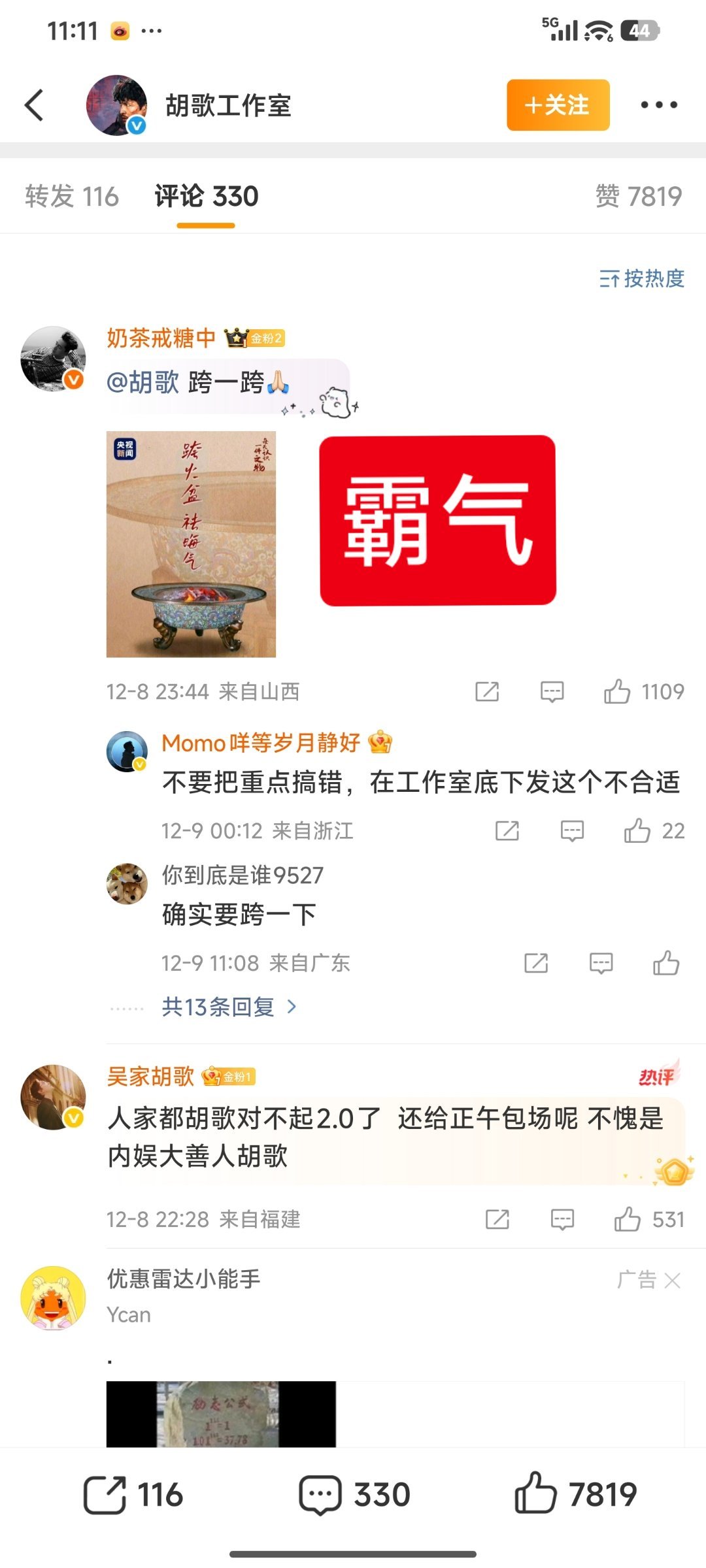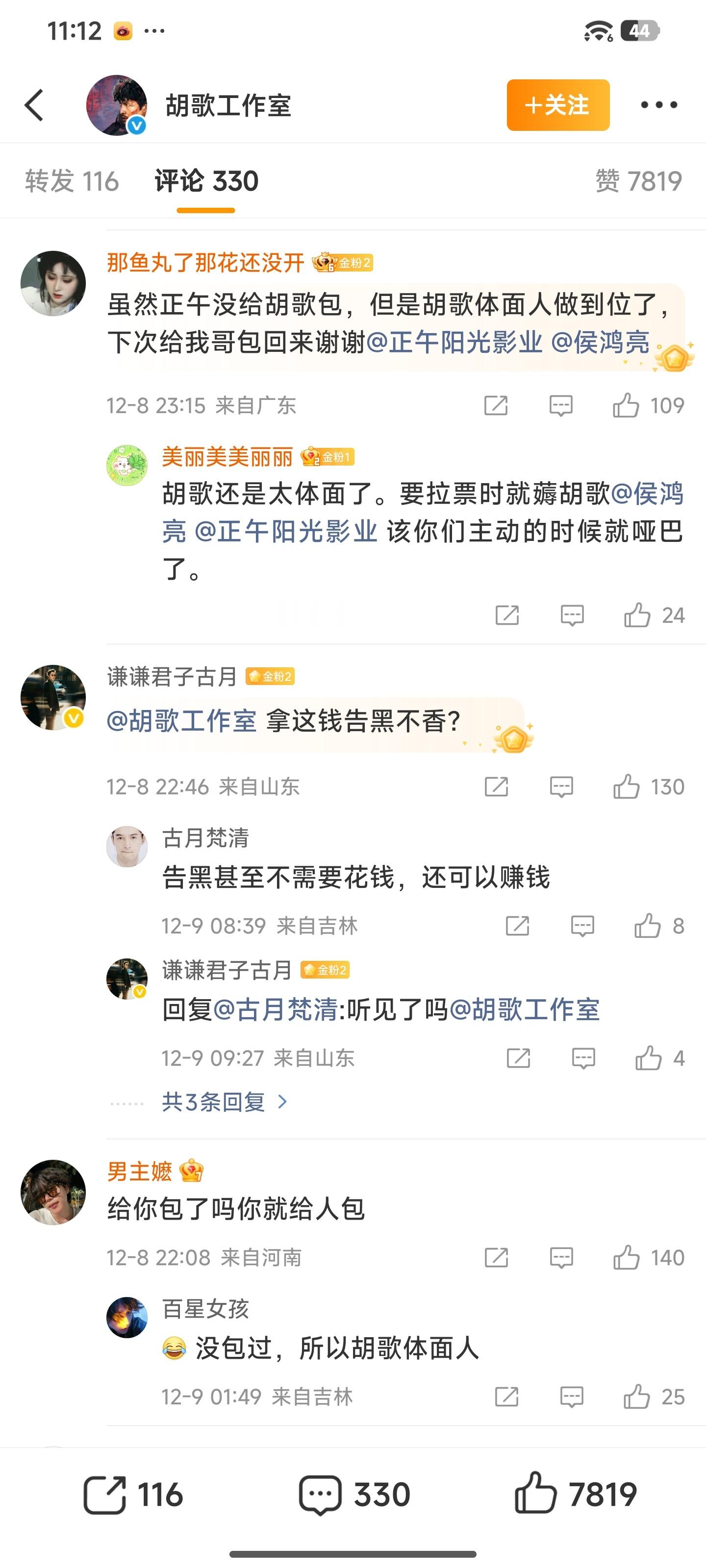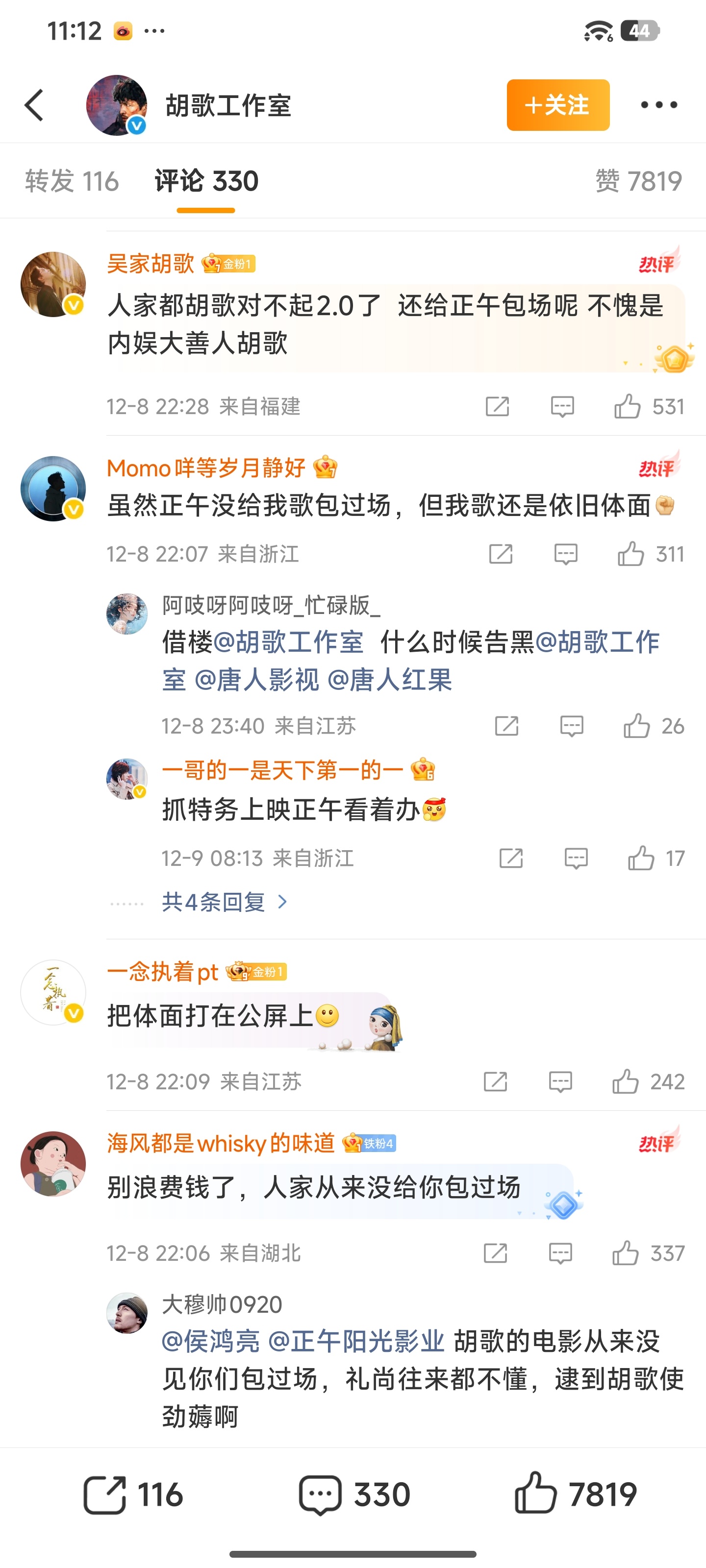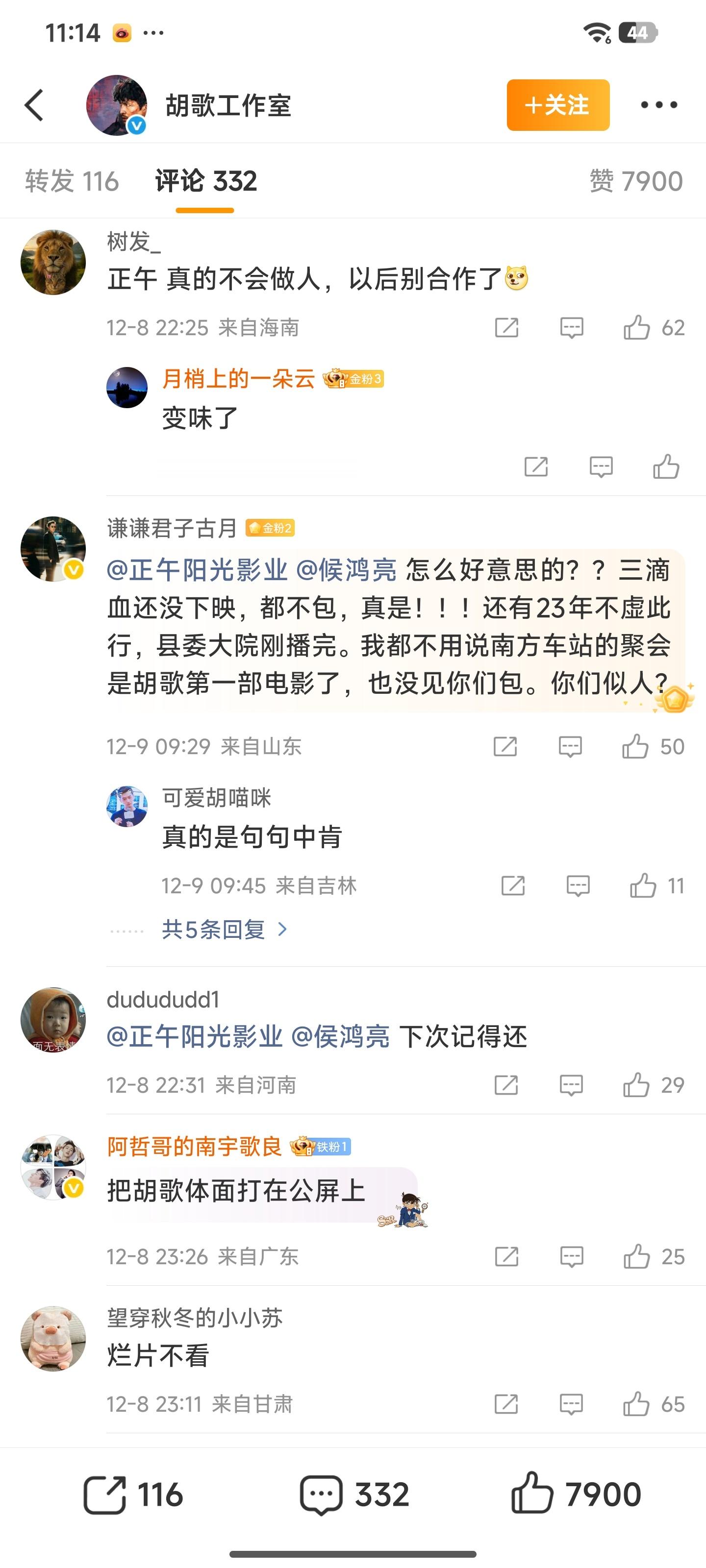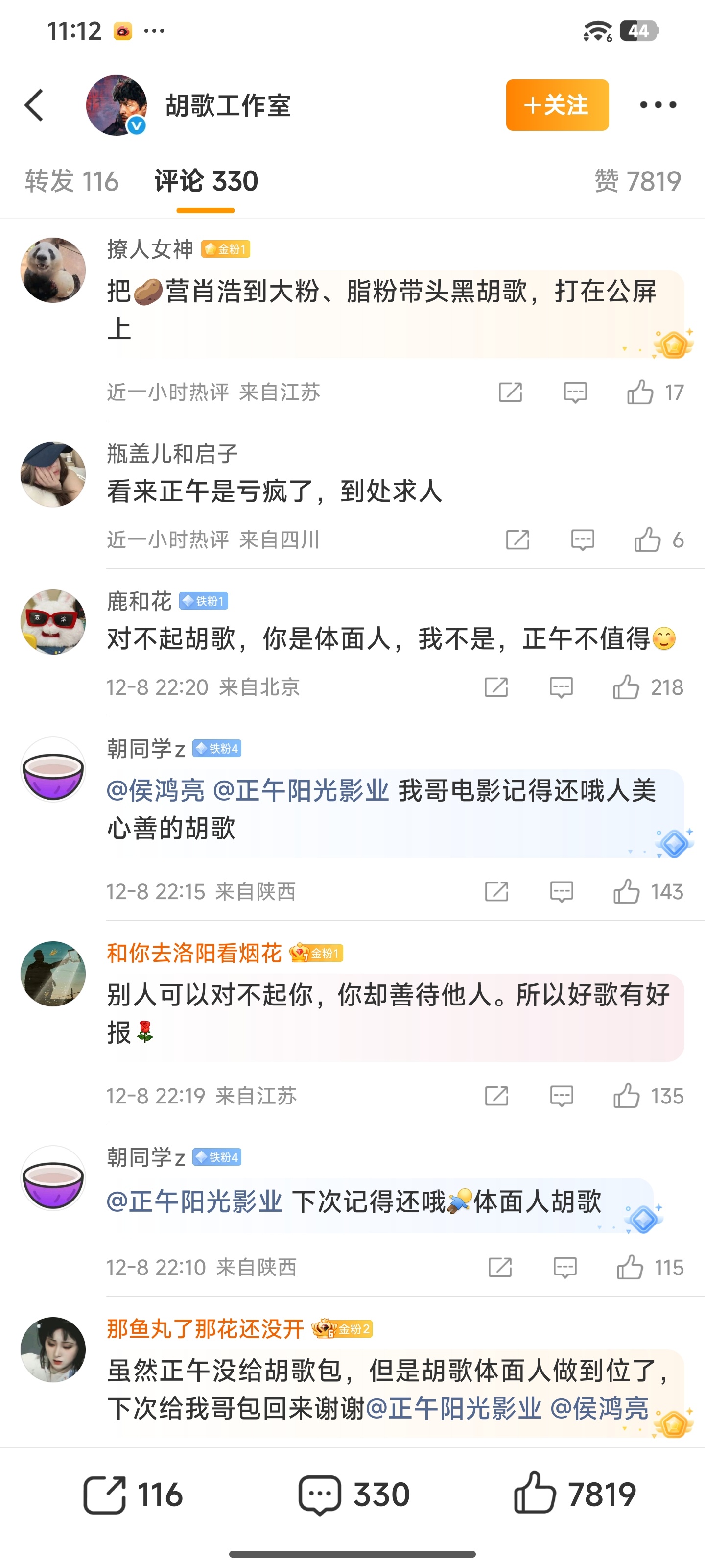 胡歌工作室包场正午阳光电影《得闲谨制》,评论区有点梅长苏的霸气怎么回事儿?