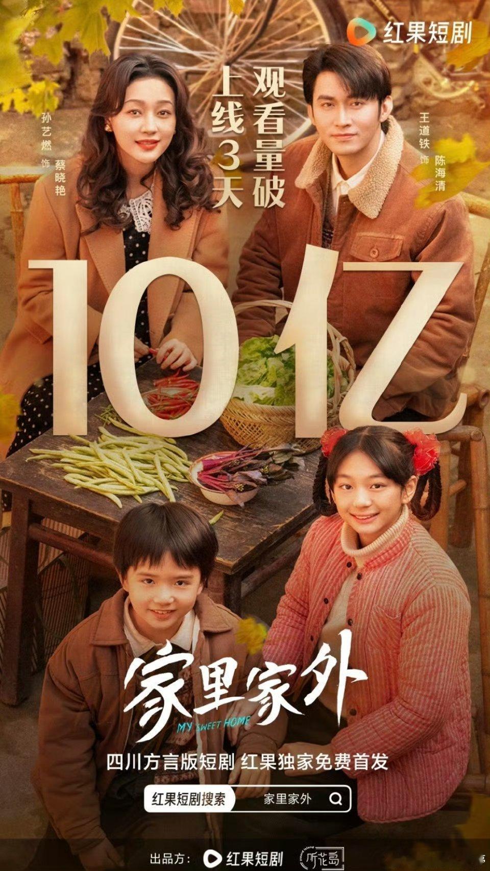 2025年播放量最快破10亿短剧《家里家外2》延续高热度,3天破10亿日均超3亿,年代细节到位、群像鲜活,烟火气里藏着温暖亲情,妥妥的观众缘收割机!