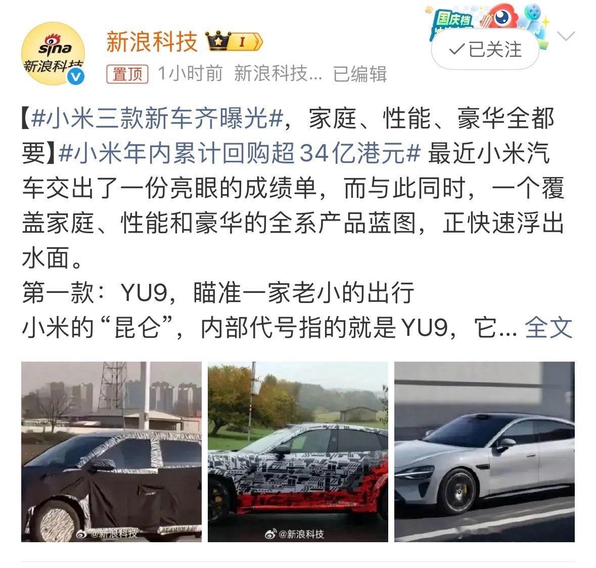 小米三款新车齐曝光小米汽车还是太猛了,11月交车数据出炉:46349台。注意,这个销量直接挤进“无定语”车型销量前十,稳坐20万以上市场第一,而且不分油电。官方之前每次只报4万+,看来每次都“藏着掖着”。而且线下更火,进店量和订单转化就没输过,销量只是产能爬坡的结果。海外都怎么看?先是MKBHD夸,后又是福特CEO把SU7拉回美国研究;彭博社说小米造出了比特斯拉更好的车……产品力到位,全球眼光都一样香。现在才两辆车就爆成这样了,很难想象今天刚曝光的三辆新车下线之后会是什么盛况,月销7万+不在话下?