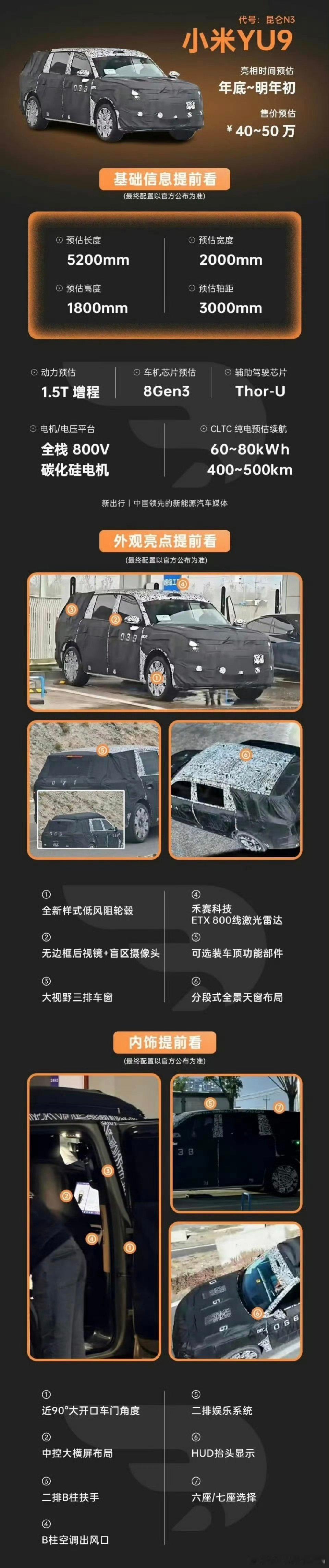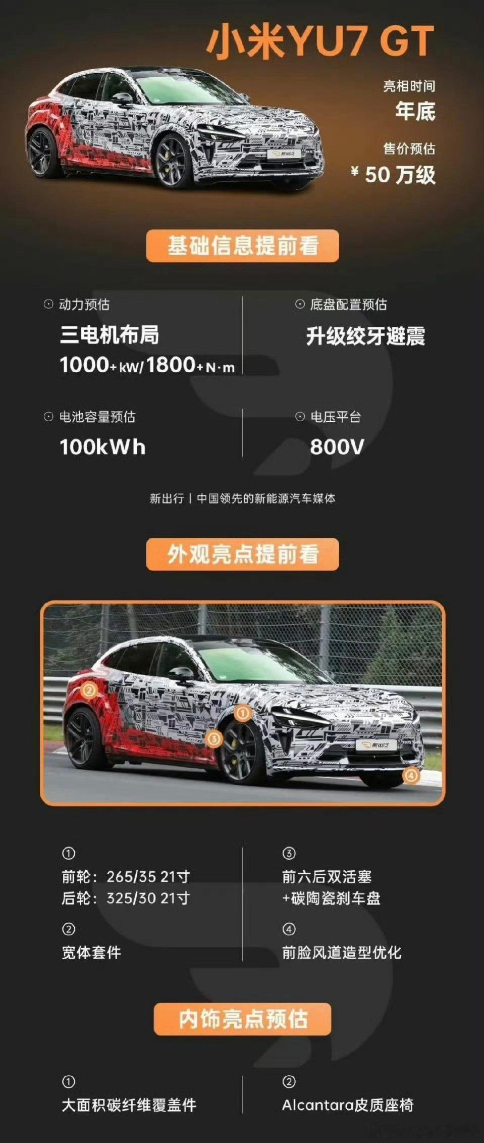 小米三款新车齐曝光增程SUV YU9、正在纽北刷圈高性能版YU7 GT,以及长轴距版SU7 L。你们最期待哪款??