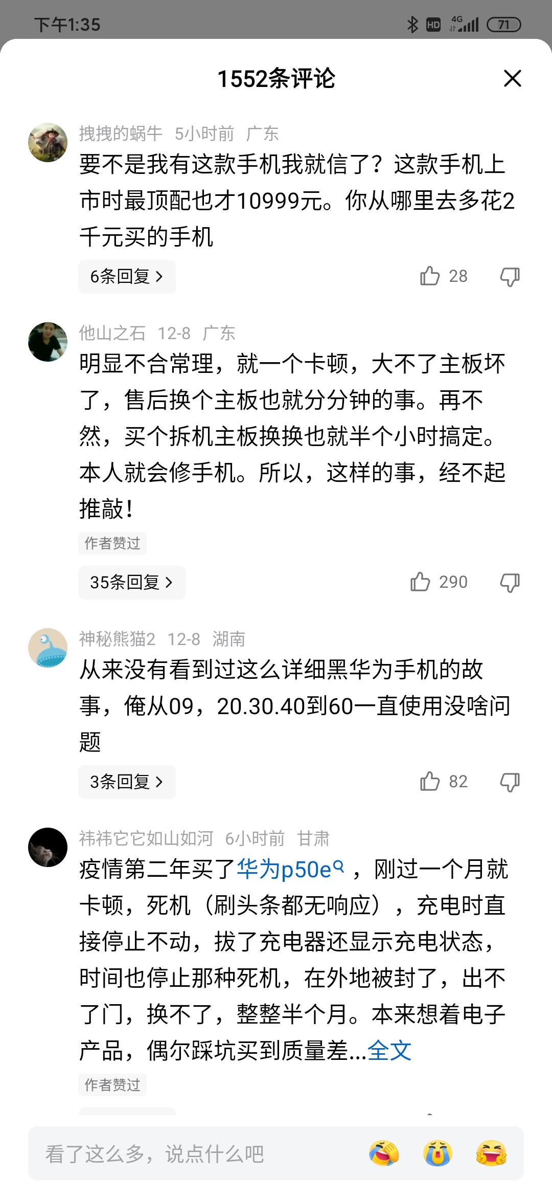 江西南昌,男子花12298元买了一部华为手机,使用一年后,手机出现卡顿、死机、暗屏多个问题。男子将手机送到服务中心维修,取回后,发现原有问题没解决,手机后盖又出现密封不严,维修人员说需返厂处理,之后,手机经过4次维修,始终没解决问题。男子对品牌失去信心,质保期内要求退换机,被拒后,将对方告上法庭,要求赔偿12298元购机款,以及精神损失费1元。而最终的结局,令所有人意想不到! 最终,对方给雷先生全额退款12298元,又给了8000元的慰问金。随后,雷先生撤诉 评论区竟然全部说从来没有出现过这些情况,一边倒的支持华为,这个意想不到。不要以为名气大就完美无瑕 其实,再好品牌也存在万分之一的优品率问题,不巧,被他买到了,也是店员的维修能力问题占大部分。 苹果手机够贵够,名气够大吧,还不是天天有人吐槽,吐槽归吐槽照样买的人很多。 有问题改进没有更好,而不是只有有一点不好就水军来封堵。 不管什么企业诚信经营,依法经商这是经商的根本,连堂堂有名的华为都是这个样子,这也难怪大众对国产品牌的不信任,不管什么产品都不是十全十美,出现质量问题要有担当,售后及时解决问题,这才能是品牌历久不衰。与鸿蒙共赴星光之约旗舰华为手机