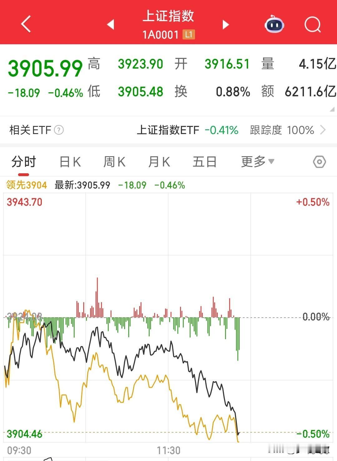 A股真是越来越看不懂了,行情越来越极端 今天A股指数虽然没有意外,出现震荡。但是个股跌的非常惨,只有科技股人工智能概念部分个股走出来了,可谓分化非常的严重。 昨天就是科技股在涨,今天科技股也开始分化,没有板块的延续性。昨天大跌的板块今天还在延续下跌,根本走出结构性行情,这种走势只能促使成交量的降低,市场人气越来越低,赚钱越来越难。 现在就只能期待下午有板块把大盘带起来了,如果下午还起不来,那么明天又是艰难的一天。