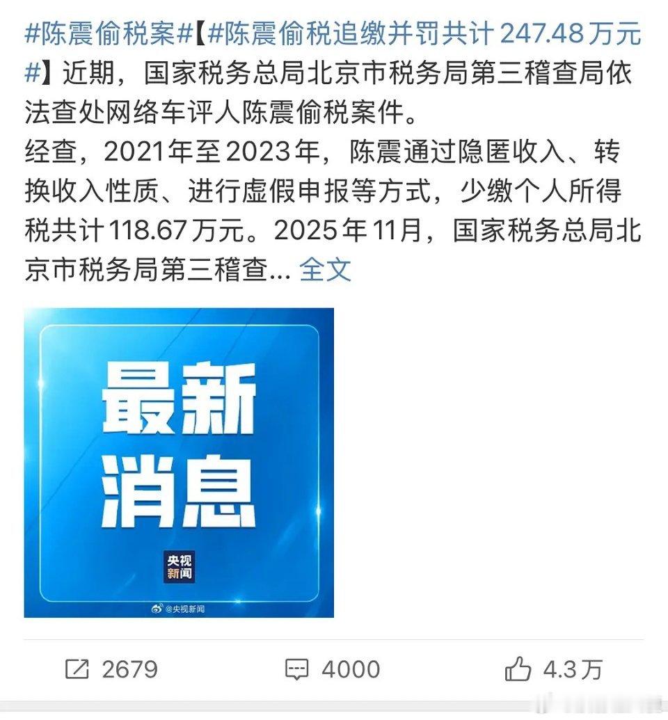 陈震这个事情,明明是著名的外环十三郎,天龙人,没想到倒在税上。不能理解,他都开那么贵的车,居然还偷漏这点税。他后台很硬的,这次感觉是别的事被清算了。