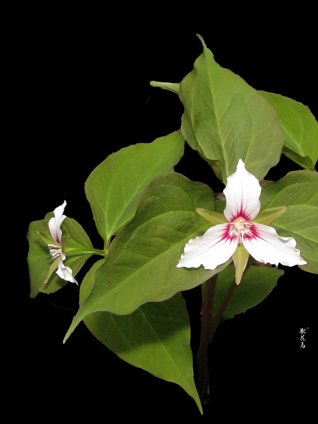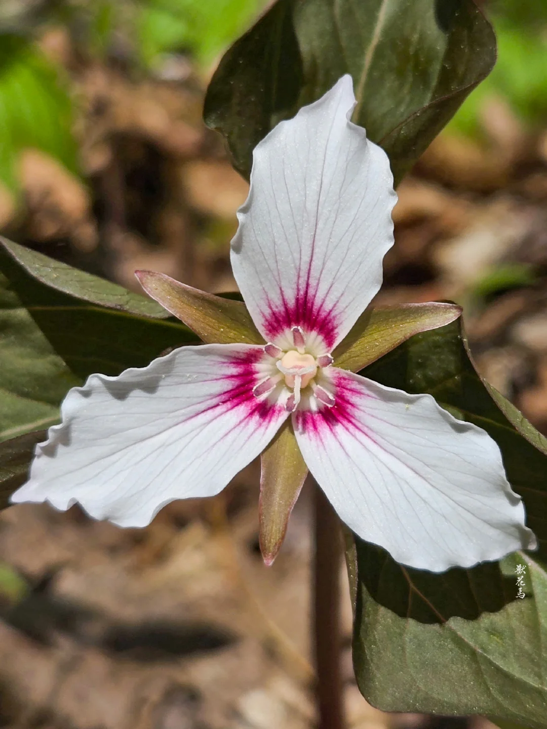 ✨花朵与叶片均以“三”为基数:3片花瓣、3片萼片、3片轮生叶,呈现出完美的几何对称