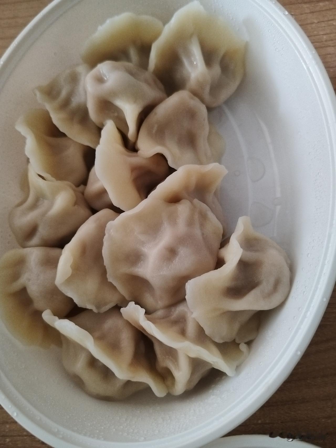 今天点了外卖,一份炸酱面,一份白菜肉水饺,总共花了四元,二十分钟送上门,饺子,面