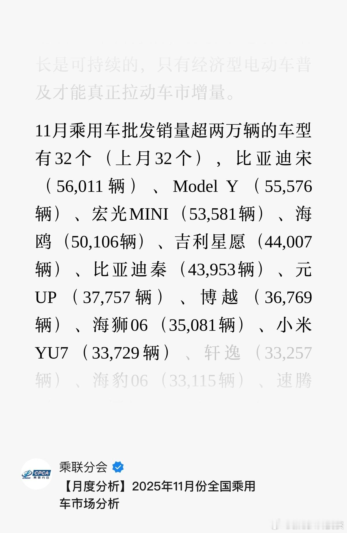 小米三款新车齐曝光这波算是双线开挂了吧?咱先看销量,乘联会实锤11月卖了46349台,比官方还多六千多。YU7单车33729台进车型前十,SU7稳坐20万以上销冠快一年了都。我感觉能有这成绩,还是靠实打实的产品力撑着。之前相信大家也都看过,各种的拆车实测都能证明小米死磕技术没白费,五大核心技术投入也全都落地。而且小米也是精准踩中理性科技党的需求,海外更是一片好评,MKBHD、福特CEO、黄仁勋还有宝格丽CEO都在夸。就像大佬们说的,小米也给了特斯拉巨大的挑战,甚至要降价应对YU7的冲击。现在三款新车又补全了产品线,YU9瞄准了6座家庭需求。YU7 GT主打性能牌,还有SU7 L加长版行政车,质感和排面直接拉满。从家用到性能再到商务,全场景都覆盖到了。后续就等新车具体产品力落地,锐锐感觉到时候绝对有的看。