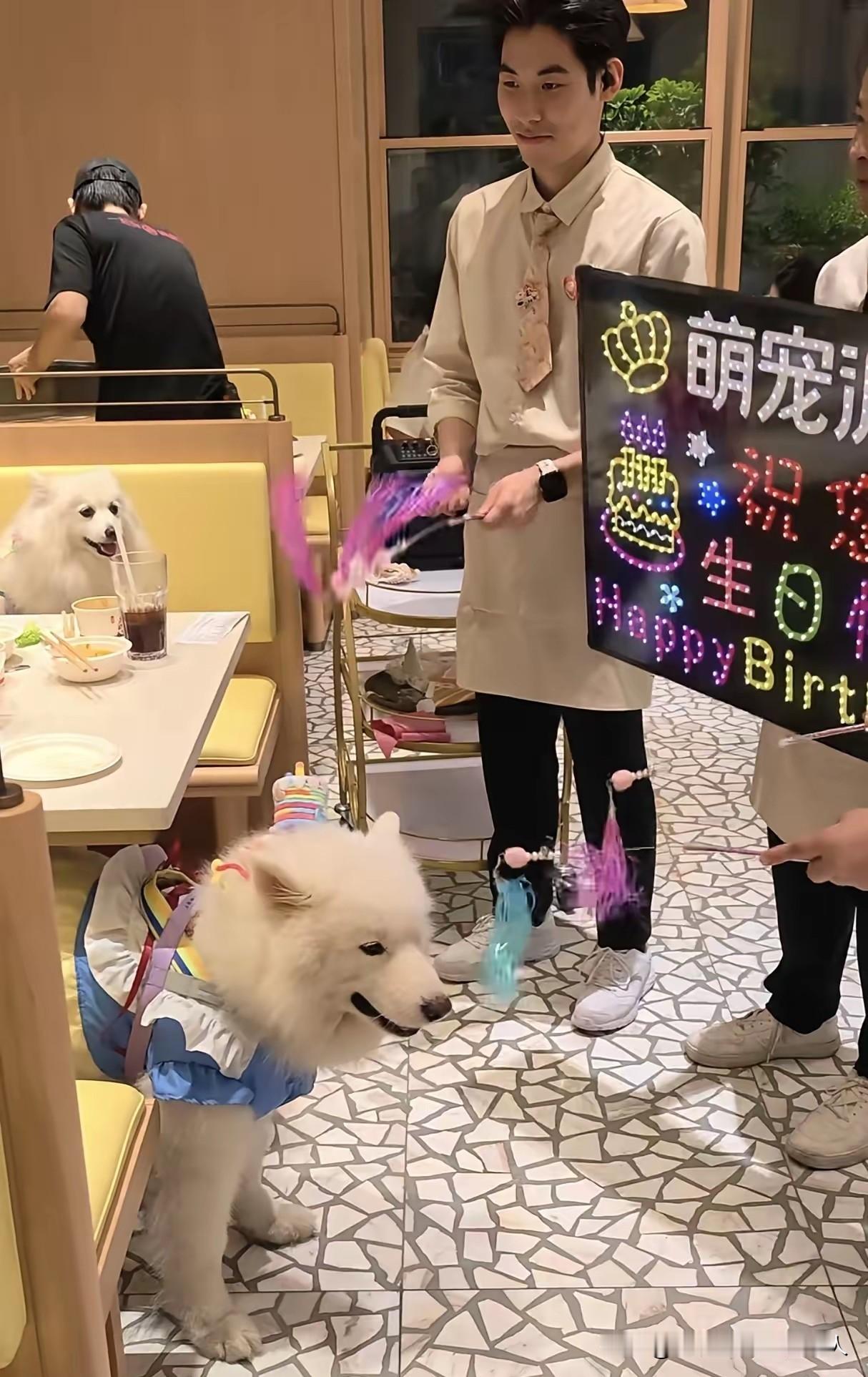 难道为了挣钱,就没有底线了吗? 海底捞开宠物餐厅,让宠物上桌吃东西我理解,让员工给狗表演扯面我也不反对,唯独让服务员围成一圈,给狗子唱生日歌,我接受不了。 员工是拿你们的工资没错,服从你们的管理安排也是应该的,但员工应该有自己起码的人权。 过生日的狗子开不开心我不知道,但那天给狗子唱歌的员工,心里肯定是不舒服的。 但为什么还是唱了,大家其实都明白。 没有平等的价值就是歧视,这不应该出现在这么有名的连锁店。 就算狗主人再开心,也不能把自己的情绪价值,强加给你的员工。 这算不算是一次失败的营销呢? 海底捞 海底捞店 海底捞宠物派对 海底捞亲子餐厅 海底捞宠物 海底捞小狗饭 海底捞狗餐厅