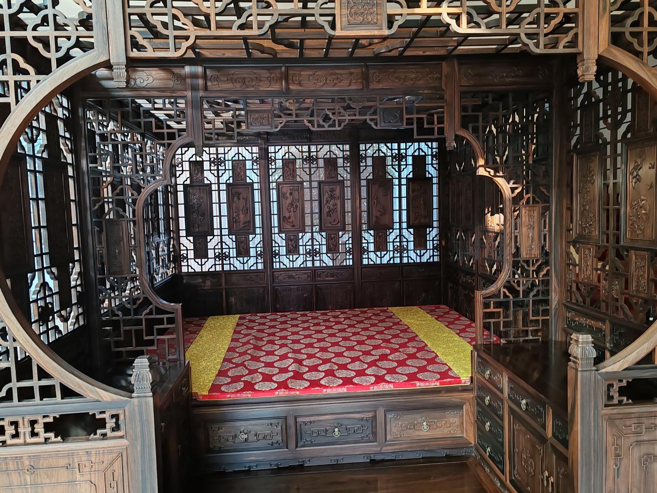 这张紫檀木床是今天在乌镇枕水宾馆发现的。谁能辨认出这是出自哪个朝代的紫檀木红木床?据介绍,这张紫檀木床已有四百多年历史,是国内保存相对完整的。雕刻的古人物,鸟儿花纹清晰。真想将这张有四百多年历史的紫檀木床买回来。头条上,我已赚了2226元。争取在未来的一年内赚够100万,兄弟们,相信我,一定会成功的