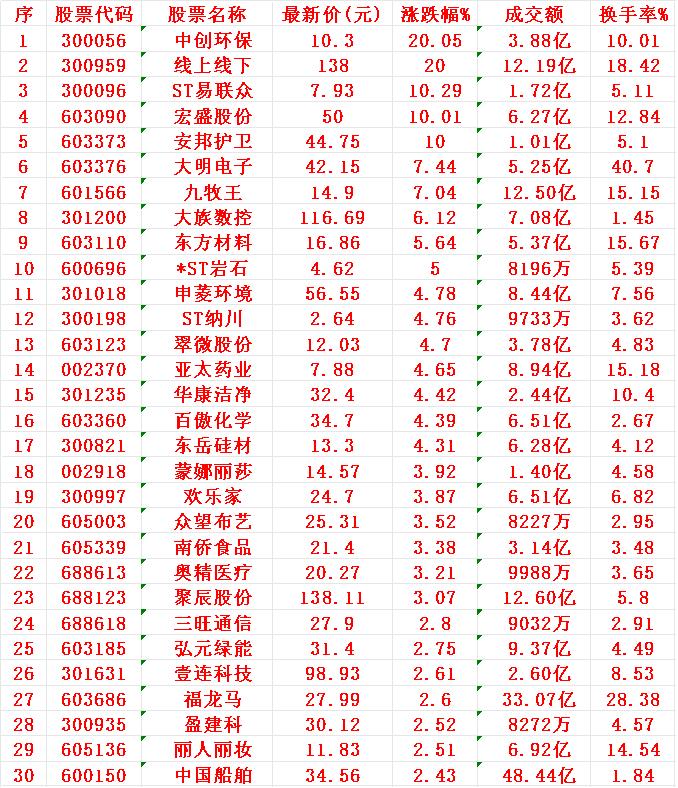 12月9日,KDJ日线金叉的30名单汇总 中创环保:最新价 10.30元,涨跌幅 +20.05%(接近或达到涨停) 线上线下:最新价 138.00元,涨跌幅 +20.00%(涨停) ST易联众:最新价 7.93元,涨跌幅 +10.29%(ST股涨停,涨幅超常规10%) 宏盛股份:最新价 50.00元,涨跌幅 +10.01%(涨停) 安邦护卫:最新价 44.75元,涨跌幅 +10.00%(涨停) 大明电子:最新价 42.15元,涨跌幅 +7.44%