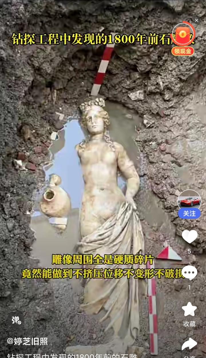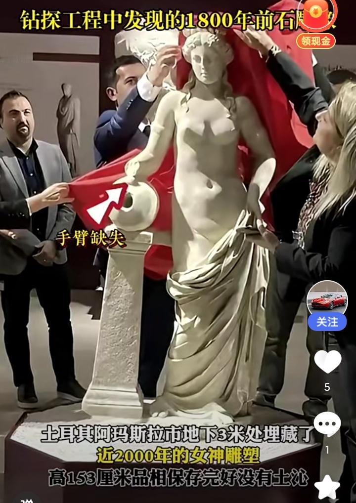 土耳其出土了2000年前的石雕像,很显然,是希腊风格的, 仍然没有穿衣服,斜披一件袍子,高1米5多, 土耳其冬天气温在零度以下,不知道土耳其人在古希腊时代,怎么过冬,反正从没有出土穿皮袍子衣服的雕像, 有趣的是,出土的地点碎石嶙峋,但石膏像没有受到任何冲击,连一点伤疤都没有,一般来说,2000年来,由于石块土层的挤压,地下水的腐蚀冲击,石像肯定会有变形疤痕,但土耳其石像完好无损, 几年前,土耳其曾经出土了11000年前的石碑,也是完好无损,像新的一样,这是个神奇的国家。