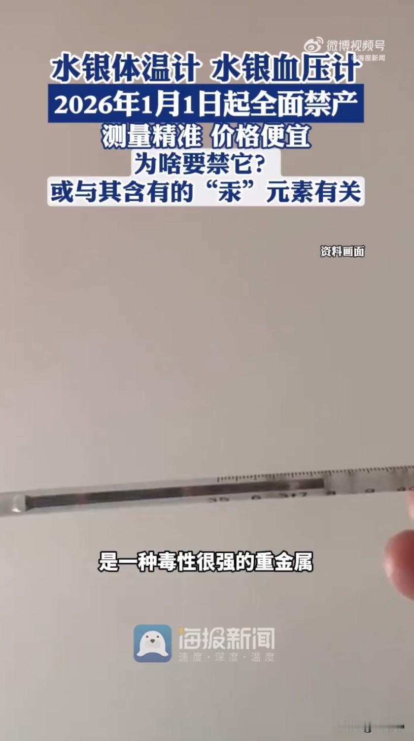 相信不少家庭的药箱里,都躺着一支水银体温计,还有不少老人习惯用水银血压计测血压,这些老物件凭着测量准、价格实在的优势,陪着大家度过了好多年,堪称家庭医疗的“老伙计”。不过现在有个新消息要跟大家说,以后咱们可能再也买不到新的水银体温计和血压计了,因为相关部门已经明确,要全面禁止生产含汞的这类医疗产品。很多人可能会纳闷,用得好好的东西为啥要禁?其实核心原因特别简单,就是为了安全。 咱们说的水银,学名叫汞,是种毒性特别强的重金属,也是常温下唯一呈液态的金属,看着亮晶晶的小珠子,实则危险重重。这种东西最让人头疼的是,体温计和血压计的外壳都是玻璃做的,一不小心就容易摔碎,里面的汞会立马流出来,变成无数细小的银色小球滚得到处都是。别小看这不到1克的汞,要是在15平方米的房间里打碎,空气中的汞浓度会在短时间内飙升近百倍,而且得持续通风好久才能恢复安全水平。更麻烦的是,汞挥发的速度会随着温度升高变快,挥发出来的汞蒸气会通过呼吸道钻进人体,短期吸入高浓度汞蒸气,会让人头晕、头痛、浑身乏力,严重的还会出现恶心呕吐的症状。要是长期接触,汞会在身体里慢慢积累,对神经系统和肾脏造成损害,尤其是对小孩和孕妇的危害更大,可能影响孩子的发育。 更关键的是,很多人处理打碎的水银时方法都不对,比如用扫帚扫、用拖把拖,或者用吸尘器吸,这些做法反而会让汞珠被打散,加速挥发,甚至让汞附着在清洁工具上持续污染空气。正确的做法是先疏散家人和宠物,开窗通风并关掉取暖设备,戴上手套用纸片把汞珠收集起来,密封好后作为有害垃圾处理,全程不能用手直接接触。可就算知道正确方法,家庭处理还是难免有残留,这些汞一旦进入土壤或水源,会在环境中长时间存在,还会通过食物链不断积累,最终还是会影响到咱们的健康。 其实大家也不用太担心,现在无汞的替代产品技术已经很成熟了。想精准测温的话,医用电子体温计就很好用,价格十几到几十块钱不等,误差特别小,测完还有提示音,老人小孩都能轻松看懂。家里有好动的孩子,选红外耳温计就很方便,十几秒就能出结果,操作简单还安全。测血压的话,电子血压计早就成了医院的主流,上臂式的精度和水银款差不多,开机绑好袖带就能自动测量,还能存储数据,老人自己就能操作。这些替代产品不仅安全无隐患,使用起来还比水银款更省心,完全能满足日常测量需求。所以家里现在有的水银体温计和血压计,只要没摔碎、没过期还能继续用,等以后用坏了再换无汞款就行,既不浪费又能保障安全。 水银温度计 水银温度计中毒 来源:海报新闻