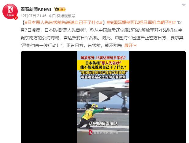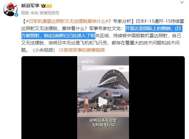 日军机遭雷达照射又无法摆脱意味什么? 从这一句话就可以看出,日本军机已经弱爆了。 据媒体透露,近日辽宁舰在划定区域演习,遭受日方军机干扰,我方用雷达照射日方军机,让人没有想到的是,日方军机被雷达持续照射且无法摆脱,随后日方还恶人先告状,谴责我方干扰了他们的军机。 从这个消息我们也可以得出结论了,日方不管从那个方面,他们的军机在探测、机动和电子对抗能力上均落后于中方歼-15,丧失战场主动权。这也说明了日本无论是飞机和飞行员,都存在着重大的技术问题和战术问题。另外这要是在实战中,意味着对方随时会被击落。 当然也能看出日方飞行员的缺乏反制手段,可以肯定我们的军事技术已经明显高于日方。经过这个事件之后,估计日方也应该知道自己的军事水平和我们差距有多大了。